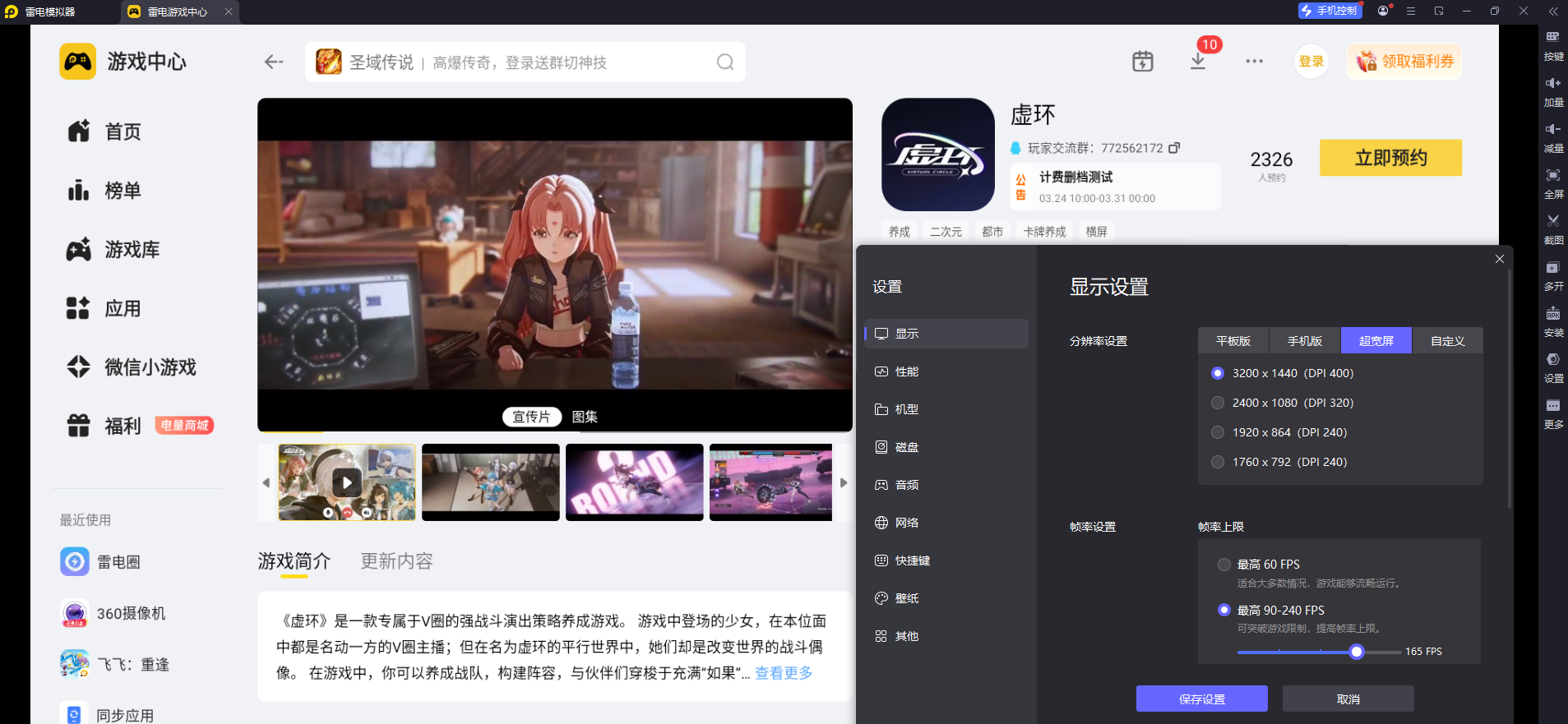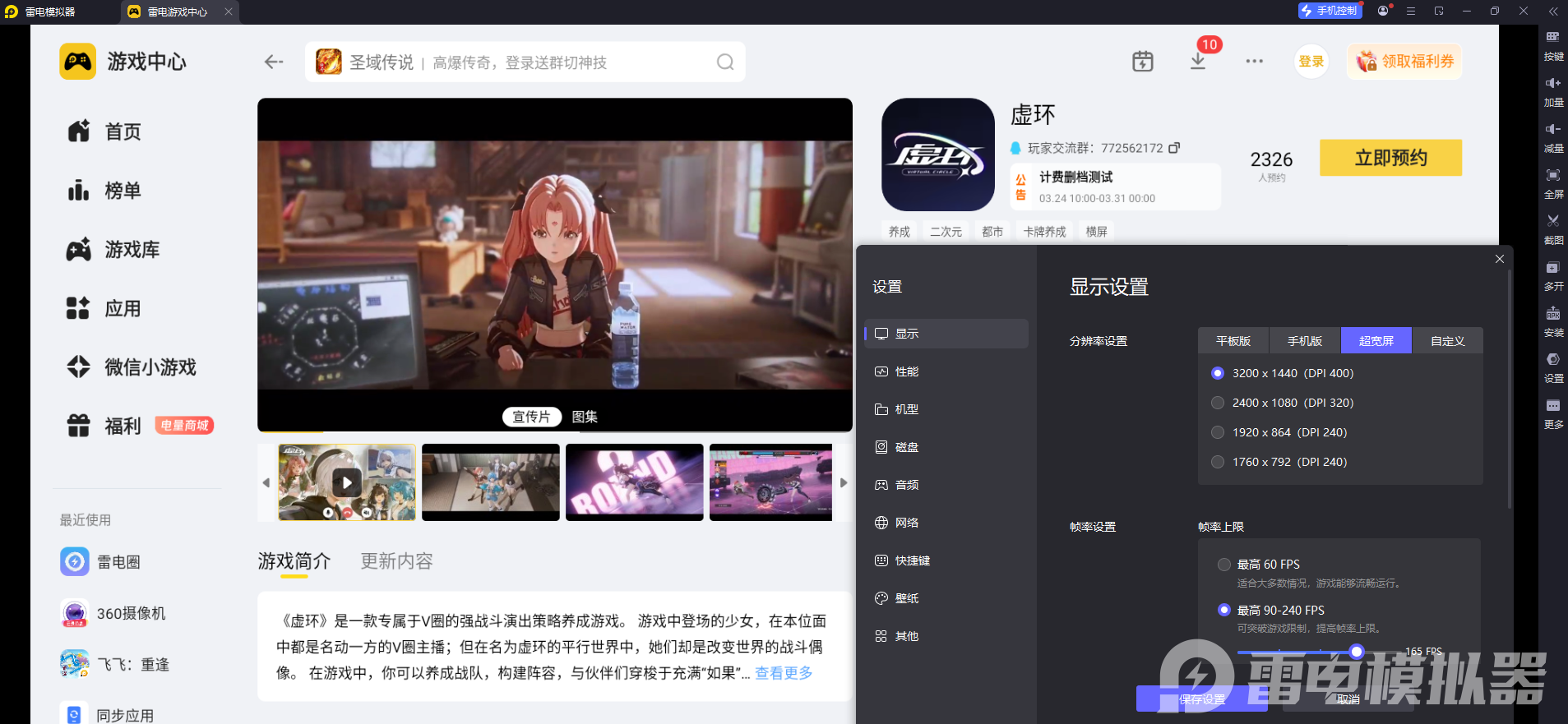 手机受屏幕尺寸与硬件规格限制,游戏画面的场景纹理、角色建模细节无法完整展现,雷电模拟器支持4K高清大屏画面渲染,能够完整还原游戏的高清画质,游戏里的场景细节、角色特效、建模纹理都能清晰呈现,色彩表现也更加饱满细腻,彻底打破手机屏幕的视觉限制,让虚环的视觉体验得到全方位提升。