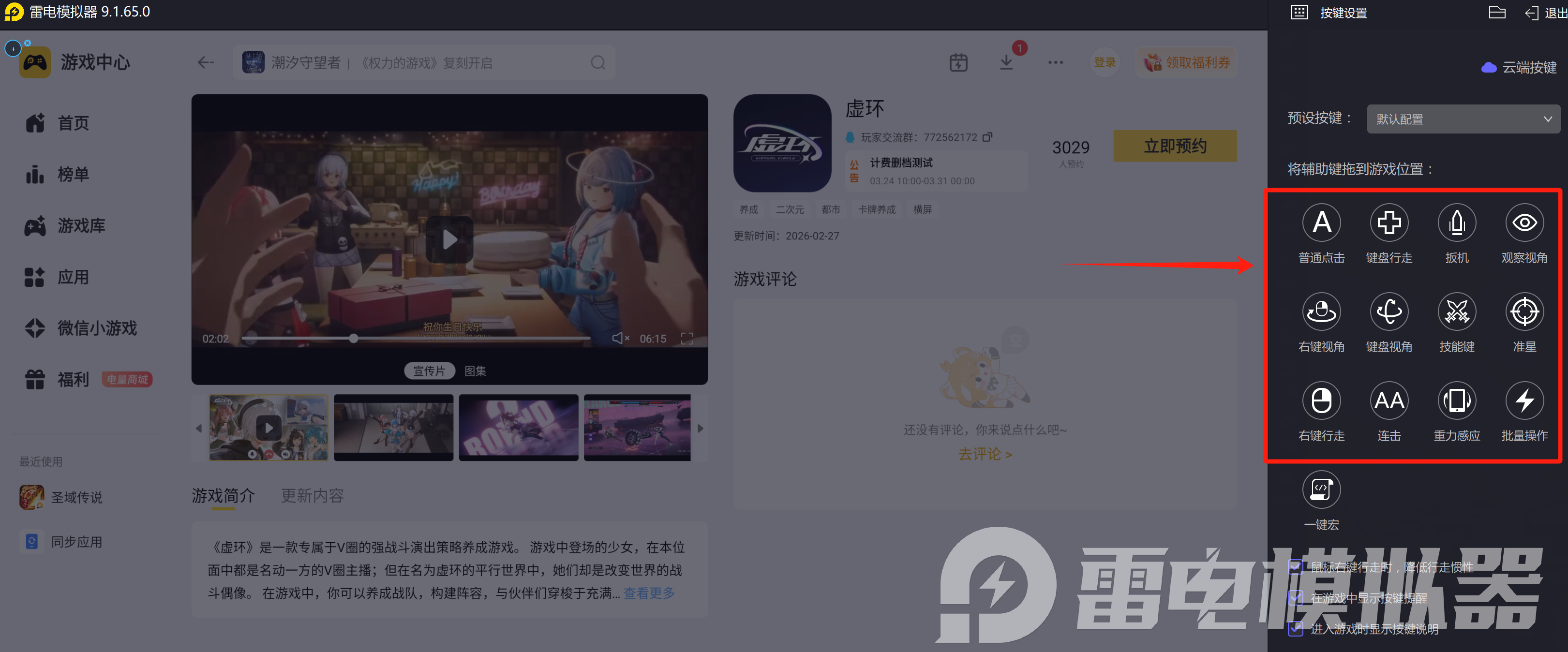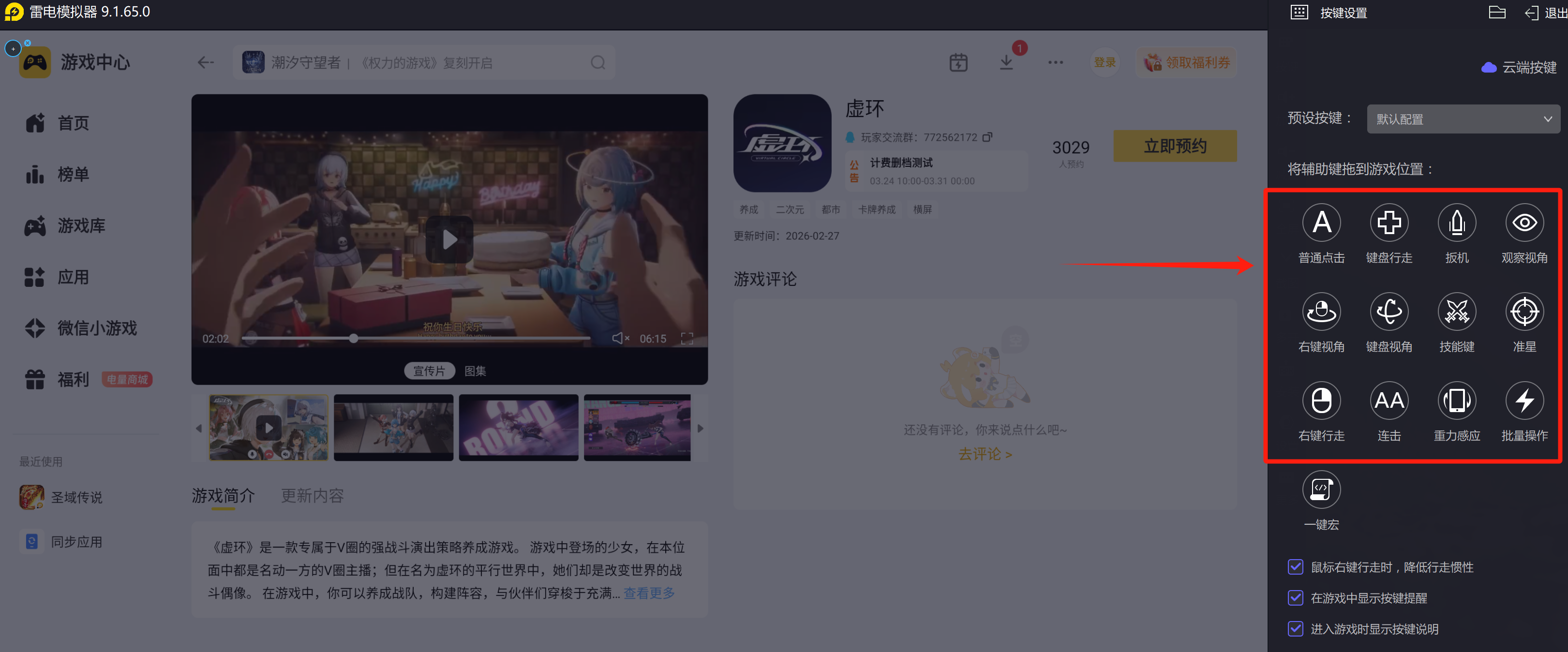 无论是日常对话、偶像互动,还是送礼物,用雷电模拟器来操作,都能更轻松愉快一些。因为模拟器右侧的菜单栏里,有按键自定义功能,玩家可根据游戏需求和自身习惯,对基础按键,进行重组设定,为虚环创建快捷键,使玩家高效完成好感度的提升任务。