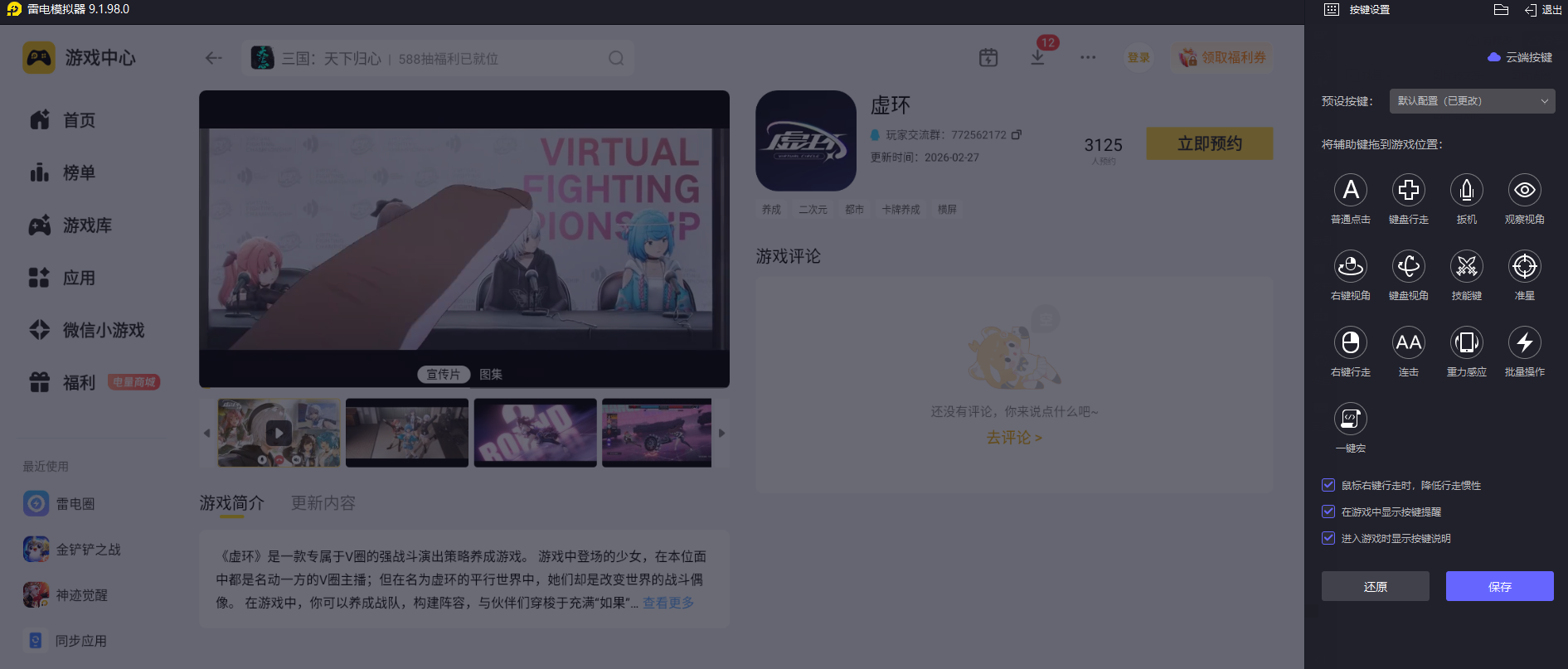 公演舞台对战需要在关键节点精准触发技能联动和阵容调整,手机触屏点击范围小,容易出现操作偏差影响公演对战节奏。雷电模拟器支持自定义键鼠操控设置,还能搭配操作录制功能预设公演对战操作步骤,精准把控每一个对战触发时机,轻松完成高阶公演的复杂阵容配合和技能衔接操作。