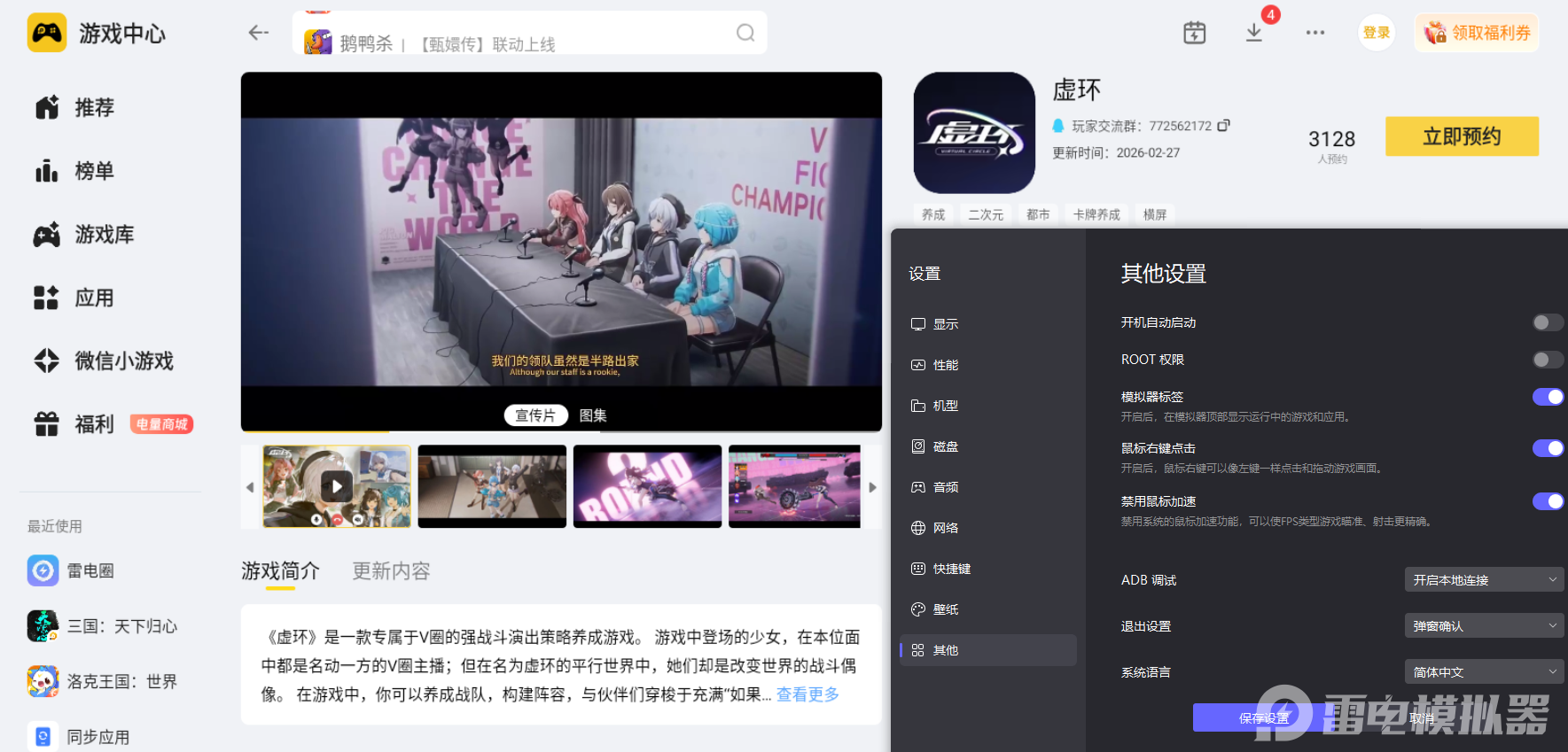 在电脑上使用雷电模拟器游玩虚环,能让整体游玩体验变得更加舒适,摆脱移动设备的游玩局限,以更沉浸的状态感受游戏的全部魅力。