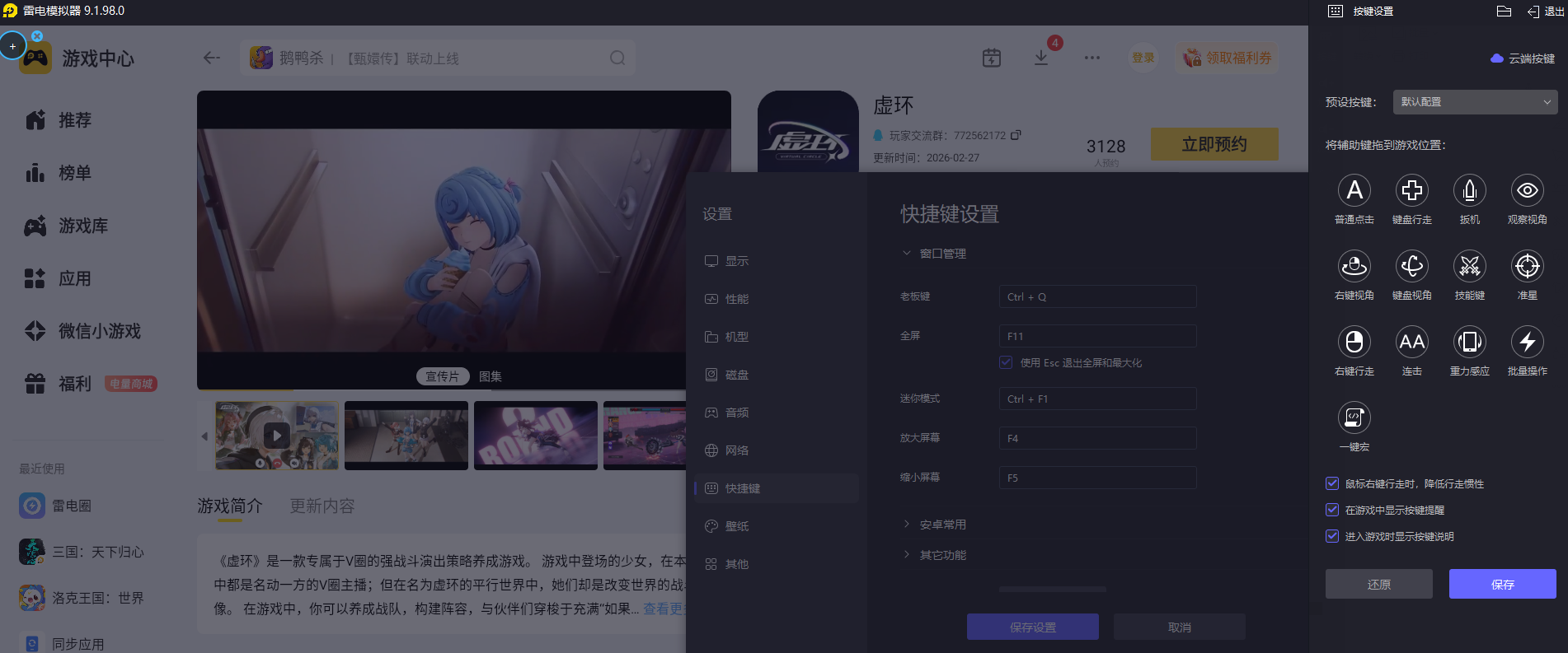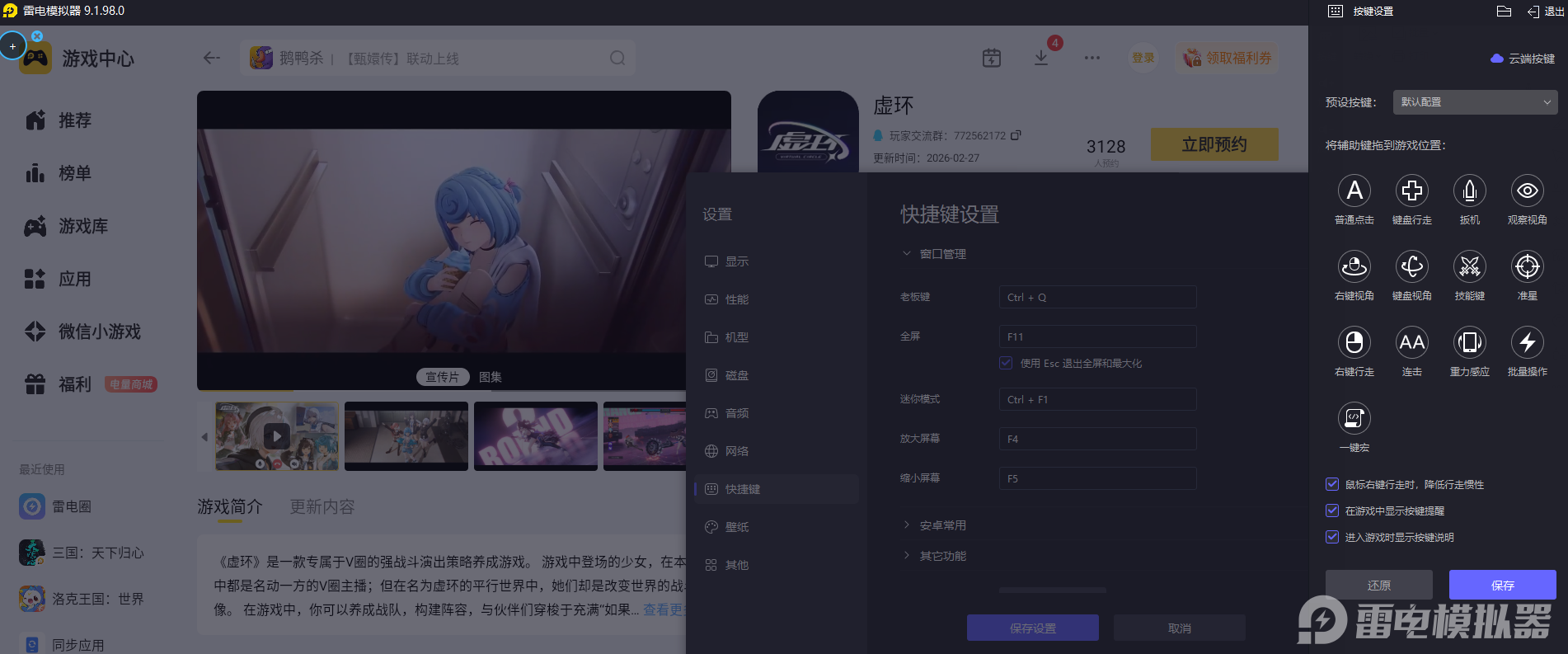 虚环的策略战斗需要频繁调整角色阵容、手动释放技能,还要精准把控爆点争夺与连协值触发时机,雷电模拟器支持自定义按键映射,能把游戏里的各项操作对应到键盘和鼠标上,指尖操作更精准,不管是快速切换角色、释放技能,还是灵活调整战斗战术,都能流畅完成,完美适配游戏的策略操作需求。