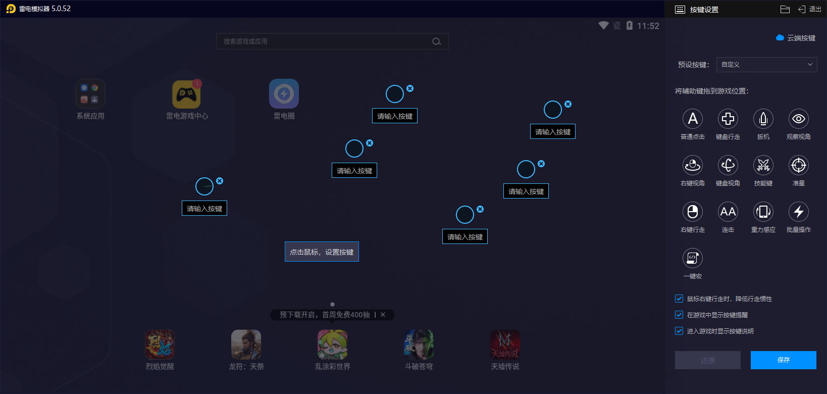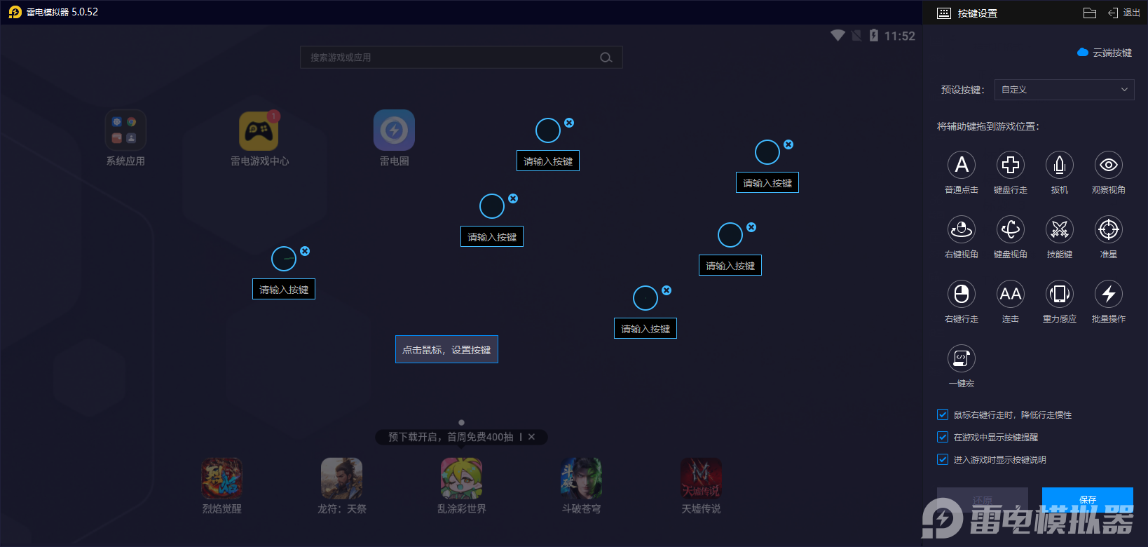 当然,我们还可去使用雷电模拟器来帮自己运行,软件提供的自定义键位和高清画面效果可是很出色的。