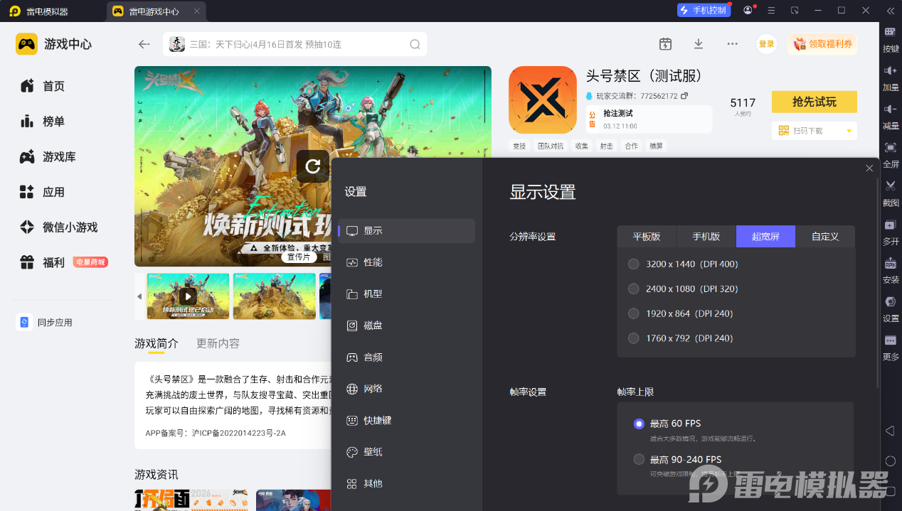 当然不管是跑刀搜物资、还是灵活躲敌人,我们都需要一个清晰的视野,雷电模拟器支持超宽屏模式,能进一步拓宽游戏视野,比手机多看到一大片战场区域,柠柚跑图时能提前发现远处的敌人、高价值物资点和保险箱位置,再也不用怕被偷袭,同时4K 超清画质让场景里的物资细节、敌人动向清晰可辨,搭配全程丝滑的高帧率,柠柚开启位移技能一蹦一跳的灵活操作毫无卡顿感,还能彻底避开手机游玩的发热掉帧问题。