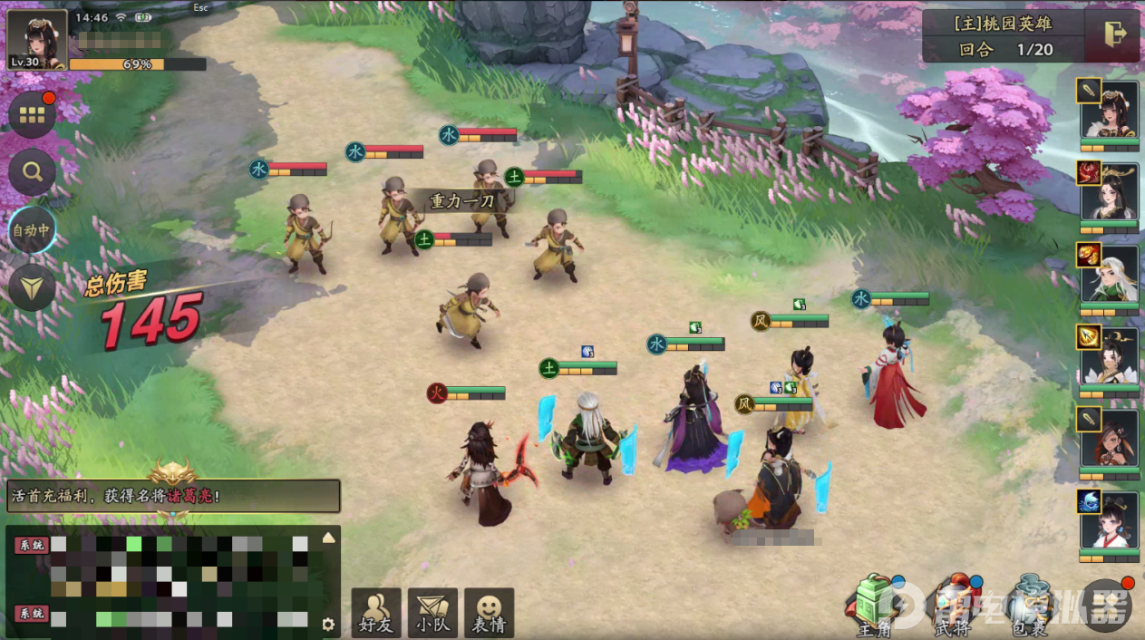 游戏主打回合制策略对战,融合经典的五行相克机制与自由布阵玩法,搭配竖屏单手操作与便捷的挂机升级系统,真正做到不肝不氪、轻松养成。玩家可以招募关羽、吕布等众多三国名将,根据武将特性与技能特点自由搭配阵容,通过武将搭配、阵型调整、技能联动打造出多样化的战术思路,每一场对决都充满策略深度。