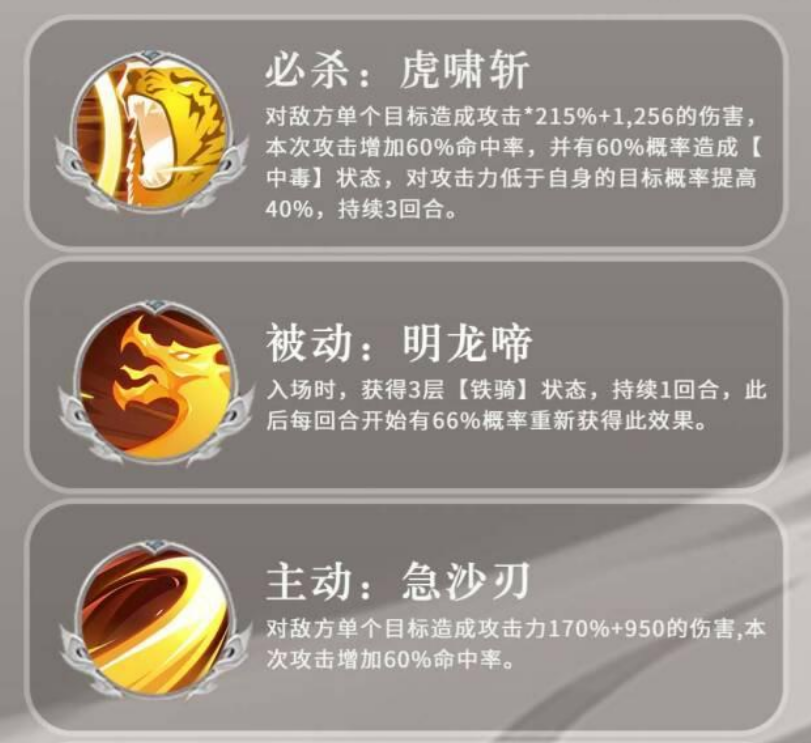 马超定位为输出型武将,主打高单体爆发。其技能机制围绕“狂怒”层数展开,常驻三层狂怒不仅能大幅提升输出,还能提供一定的减伤效果,使他在PVP和PVE中都非常实用。获取方式主要通过竞技场兑换和信物收集,培养成本相对友好。