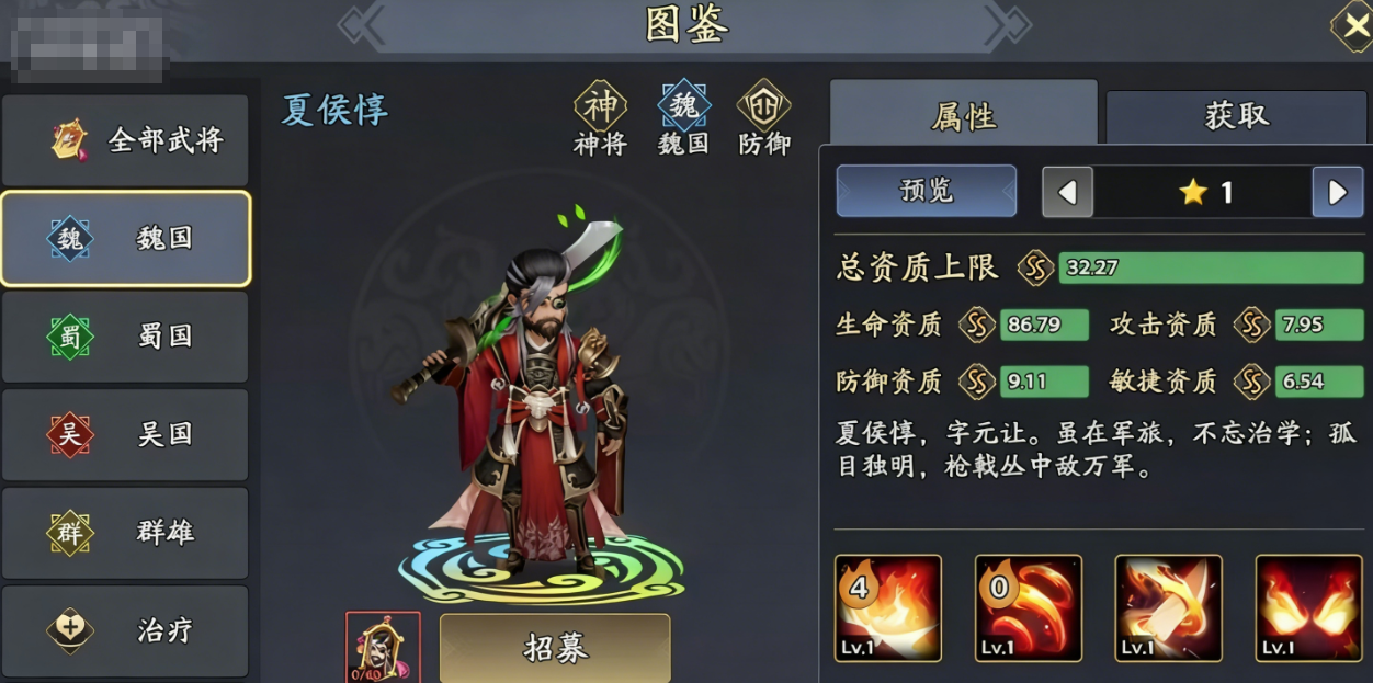 三国志异闻录夏侯惇隶属于魏国阵营,定位为防御型武将,兼具群体输出与团队续航能力,是阵容中的“攻防枢纽”。他不仅能凭借高额防御扛下敌方主要伤害,其技能还能将输出转化为治疗,为自身及队友续航,同时附带控制与减益效果,适配多种作战场景,新手可通过通行证快速获取,零氪、微氪玩家也能轻松培养成型。