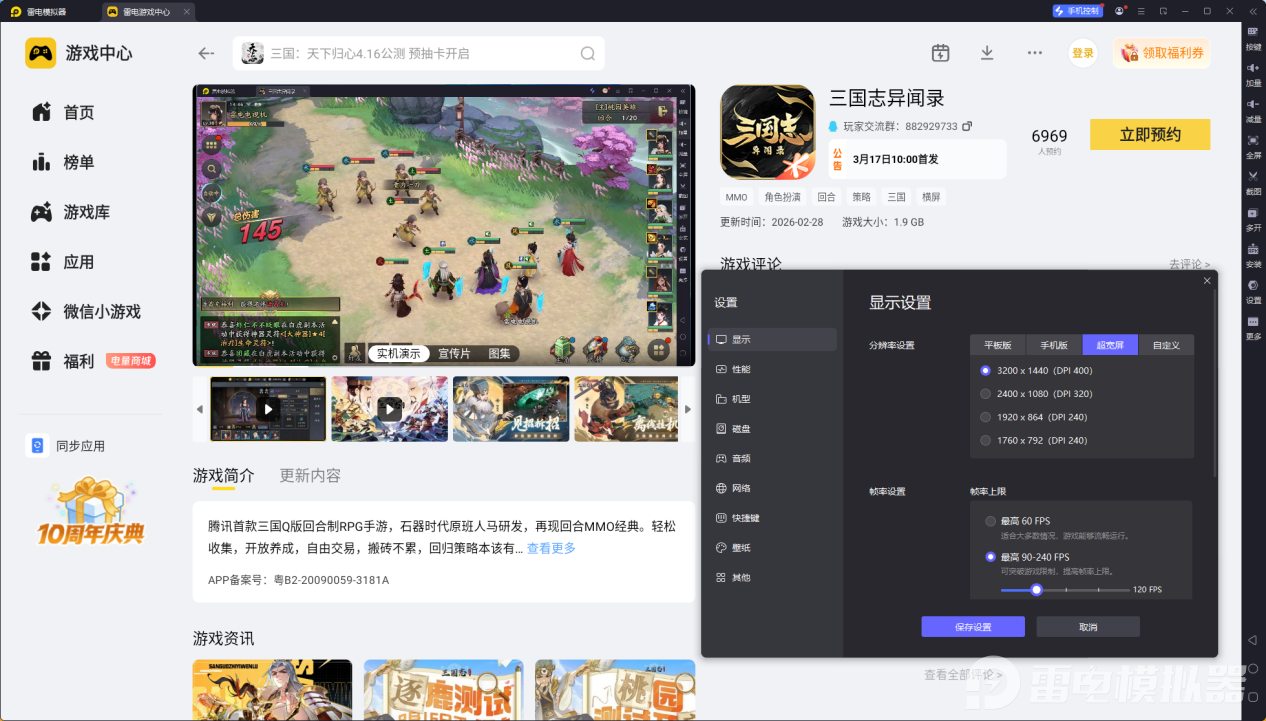 手机端玩三国志异闻录时,往往因屏幕过小,难以清晰查看武将技能CD、敌方血量及阵型细节,容易错过关键的技能释放时机。雷电模拟器支持4K超高清分辨率与稳定120FPS帧率,能清晰呈现战场每一处细节,魏延的技能范围、敌方增益状态都一目了然,避免因视野局限导致的操作失误。