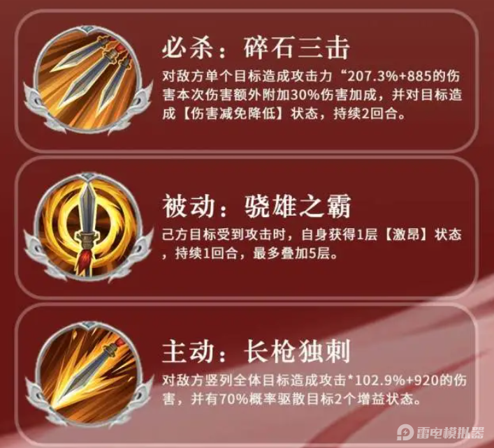 三国志异闻录孙策作为吴国核心输出武将,凭借其竖排压制与单体斩杀的复合能力,成为众多主公争相获取的热门角色。三国志异闻录孙策的定位是纯粹的输出机器,普通技能可对竖排造成可观伤害,必杀技更是能锁定单体目标并削减其伤害减免,在PVP与PVE中均有亮眼表现。若想在战场上完美驾驭这位小霸王的操作节奏,不妨试试雷电模拟器带来的大屏操控体验。