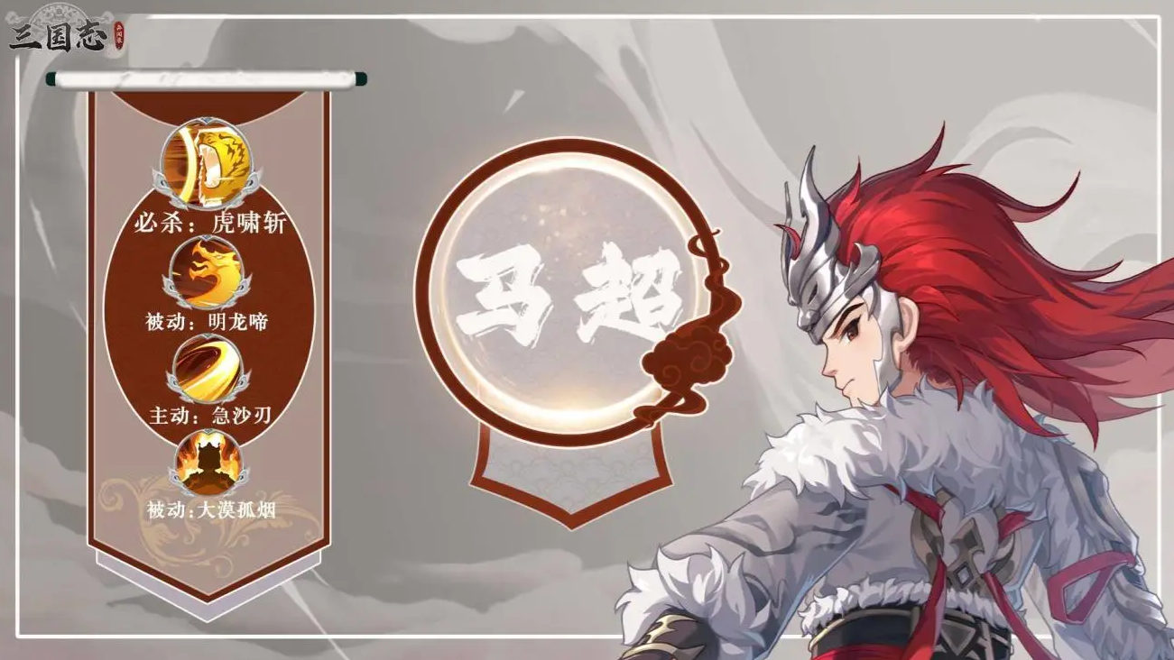 马超:入场即获3层“铁骑”状态,普攻清怪快,必杀技造成215%+1256点伤害,60%概率附加中毒,三层狂怒叠加后输出与减伤兼备,适合PK和日常副本。