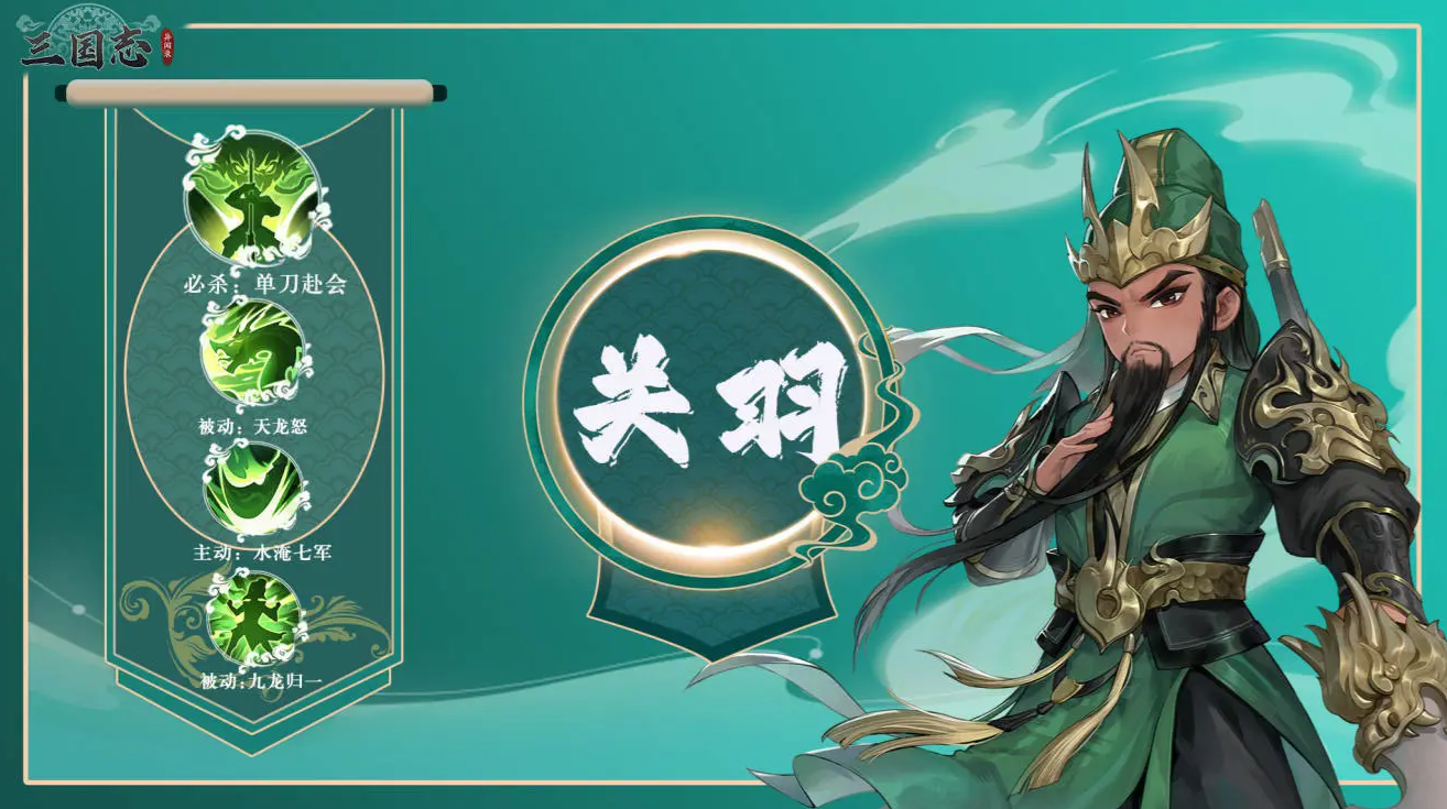 关羽:敏捷高,0怒气可远程攻击,大招对单体造成177%+940伤害,36%概率附加沉默(攻击力高于目标时概率提升至66%),被动“武圣”叠加后暴击和吸血增强。