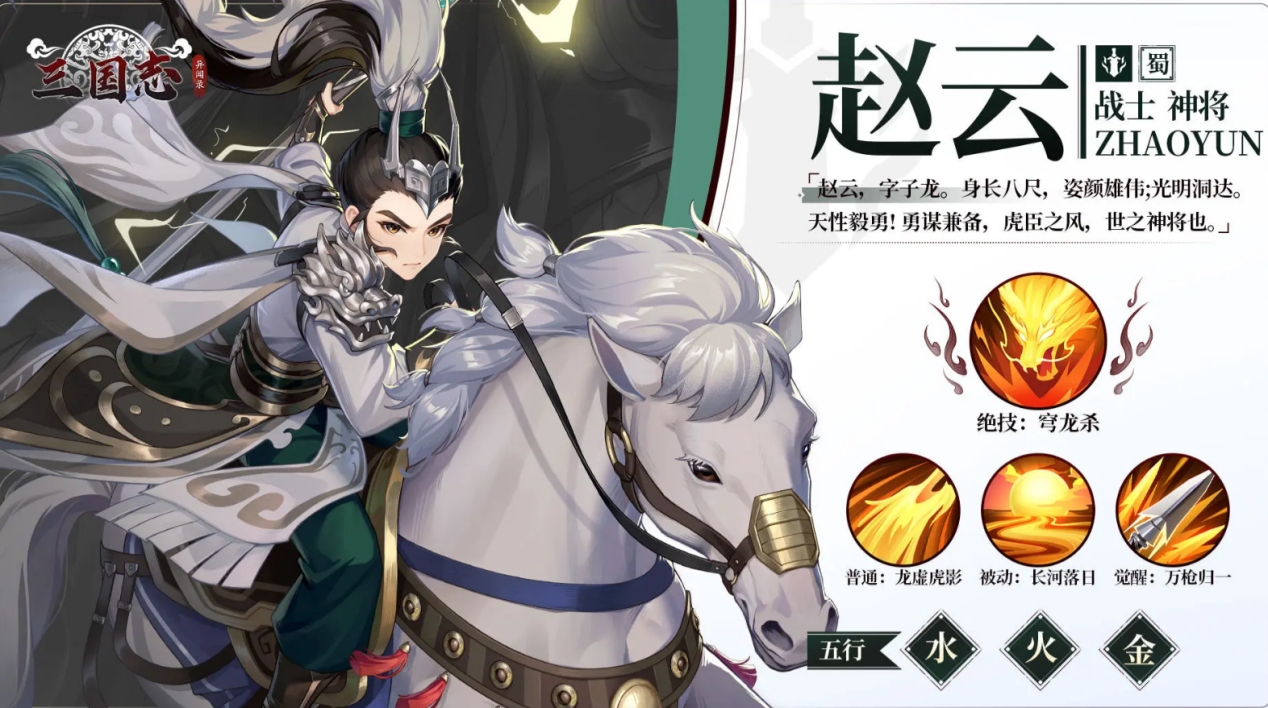 关羽归属蜀国阵营,职业定位为输出型武将,主打群体伤害与战场压制能力。随着等级提升,角色还能逐步激活火属性与金属性,进一步强化输出效果,对带有减益状态的敌人可以造成更高伤害,使关羽在中后期依然拥有稳定的爆发能力。