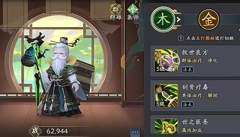 华佗的技能围绕治疗与团队保护,通过恢复、增益以及回怒机制维持作战能力。必杀技“救世良方”为多名队友恢复生命值,且附加保护效果;主动技能“刮骨疗毒”则提供单体高额治疗,也为华佗自身带来一定续航,在队友血量较低时可迅速稳定局势;被动技能“世之医圣”强化整体治疗效果并提升抗暴能力,降低被敌方高爆发瞬间击倒的风险;另一被动“五禽戏”在特定状态结束后还能为华佗回复生命与怒气,从而加快大招循环频率。