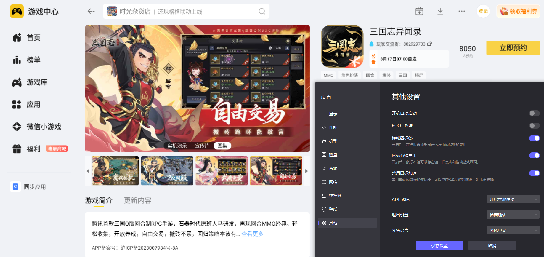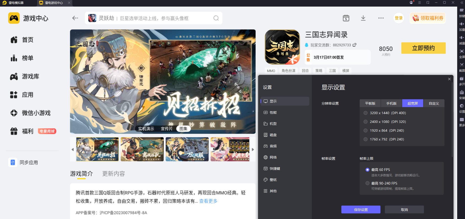 《三国志异闻录》的全平台公测时间定在2026年3月17日,下载游戏后登录就能直接体验。官方在公测前开启了预约通道,完成预约的玩家可以在公测开启后领取限定福利,助力开局快速成长,大家可以提前在雷电模拟器预约,等公测开启后第一时间进入游戏。