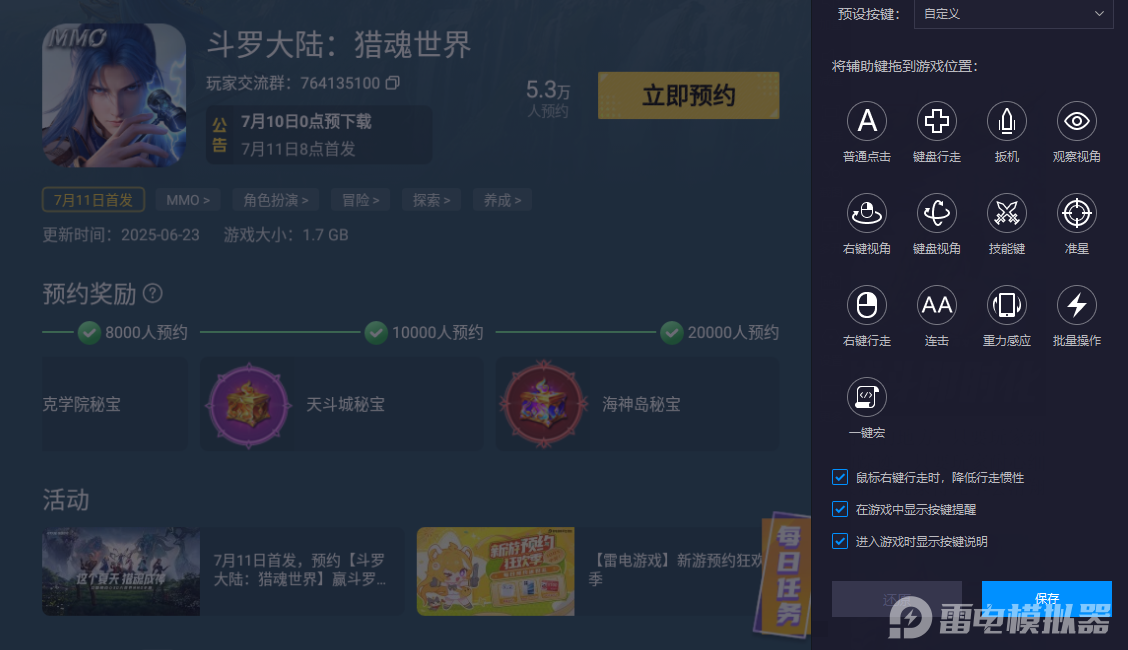 大家可以选择雷电模拟器作为自己的游戏小助手,它能够兼容键盘和鼠标以及手柄等多种操控设备,与手机触屏操作相比,在操控精准度上有着明显的优势。借助鼠标来操作,能更迅速地响应指令,让玩家在滑翔到高处取宝箱时更加的敏捷,提高获取宝箱的速率。而且,它还支持同时登录多个不同的游戏账号,玩家获取游戏资源就变得更加轻松和高效了。