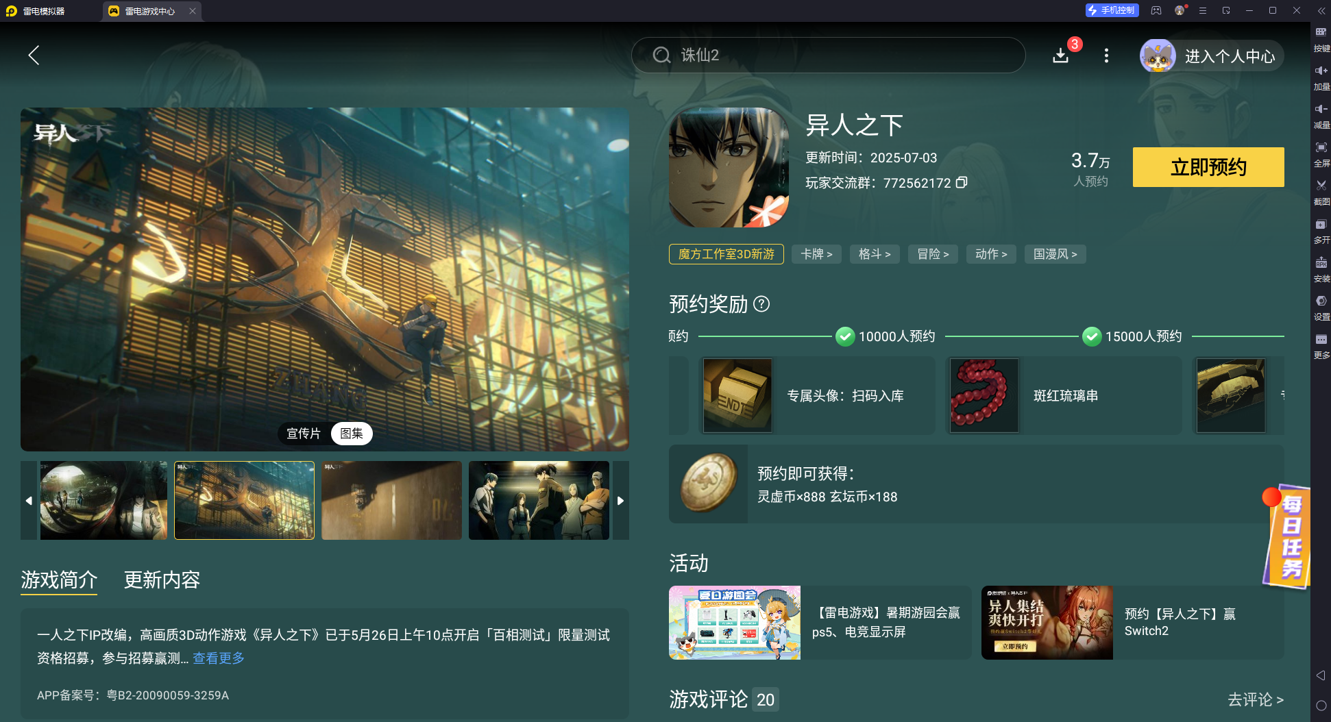 游玩这款游戏建议使用雷电模拟器,该模拟器对游戏的加成非常的大,可以稳定165帧数,同时保证画面清晰度,还能超宽屏游玩游戏,对战的时候游戏更流畅,视野更广更有优势,大家能够流畅释放技能,还能快速找到敌人,压制敌人的动作,对战胜率更高,除此之外,还有专门的游戏攻略内容,分享游戏的最新套路给各位,让各位更快的掌握游戏的最新套路,先他人一步获取对战优势。