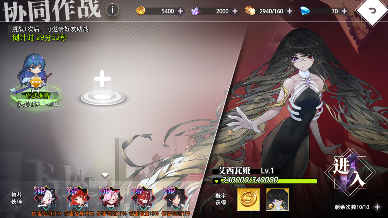 在梦境、崩坏、日常试炼中,消耗体力即有概率触发协同作战BOSS,每个玩家同时最多只可触发1个BOSS。BOSS有挑战时限,触发BOSS后开始倒计时。
