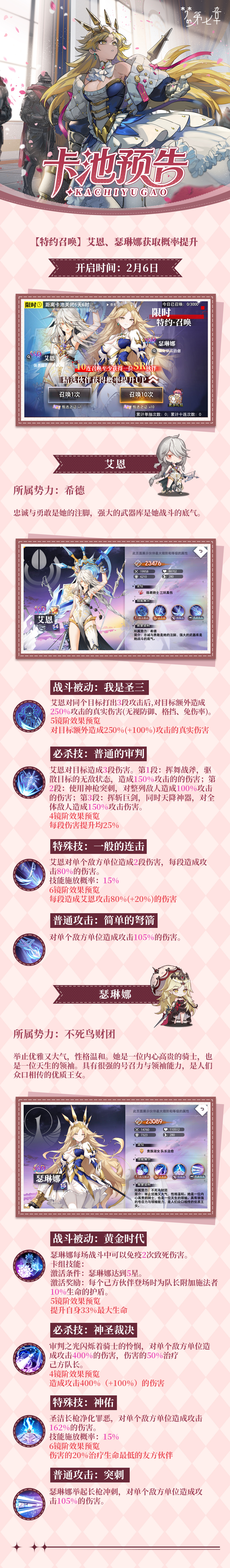 《梦的第七章》【特约召唤】艾恩、瑟琳娜获取概率提升
