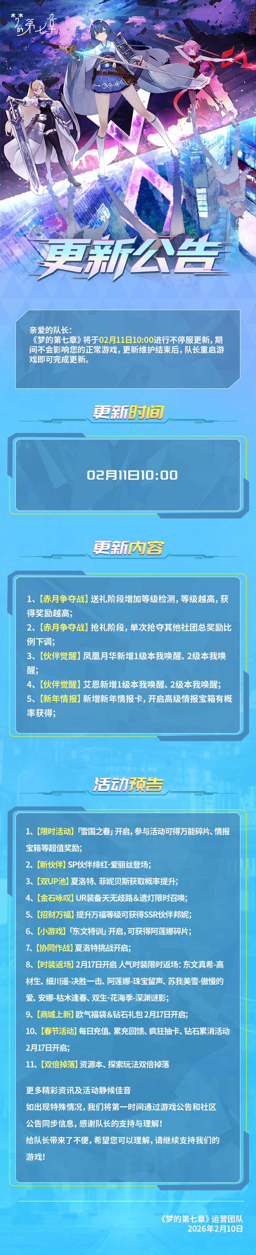 《梦的第七章》新春活动「雪国之春」将于2月16日开启,全新SP伙伴绯红·爱丽丝登场,新春庆典活动开启...
