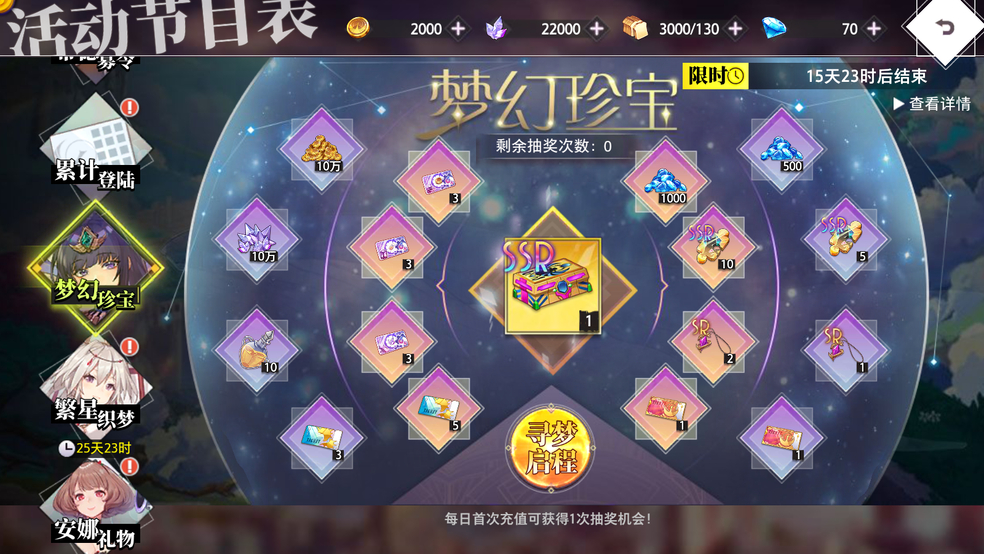 第12期梦幻珍宝开启,可获得UR装备权柄明珠!每次首次充值可获得1次抽奖机会。