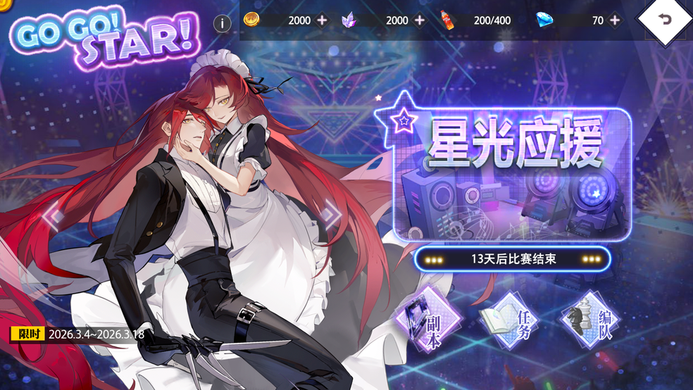 本次活动包含星光应援,大型活动副本、活动日常任务和活动成就任务。