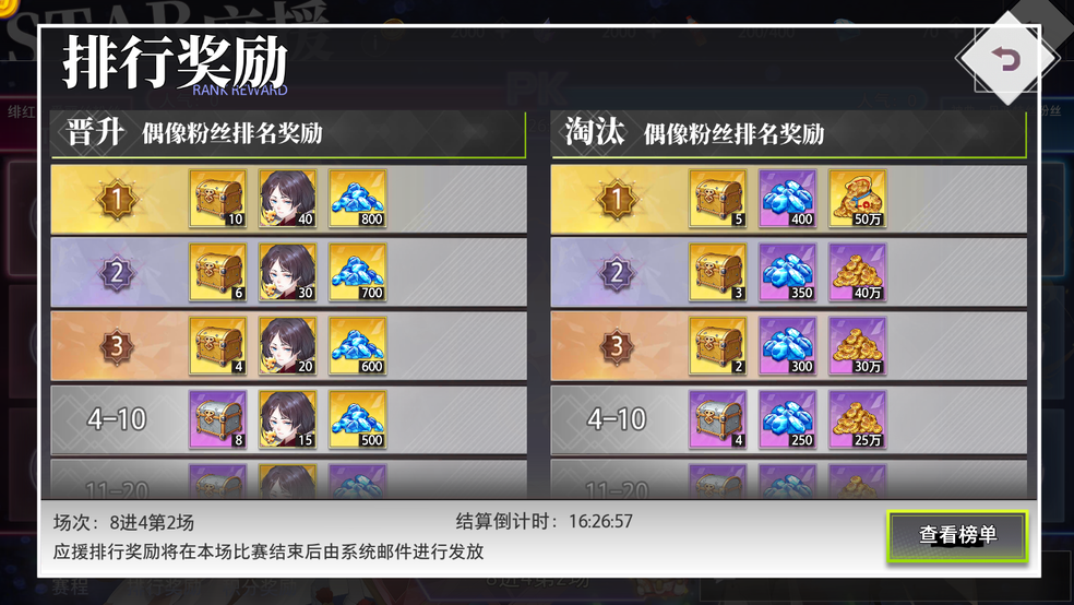 同时应援两个偶像可能会同时上榜,获得对应的排行奖励哦~