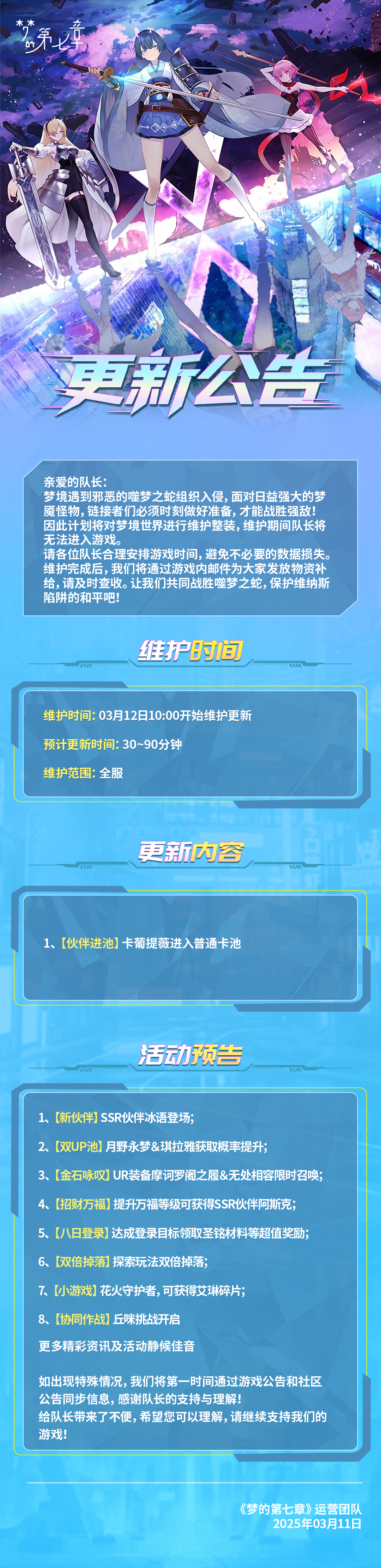 《梦的第七章》3月12日维护公告