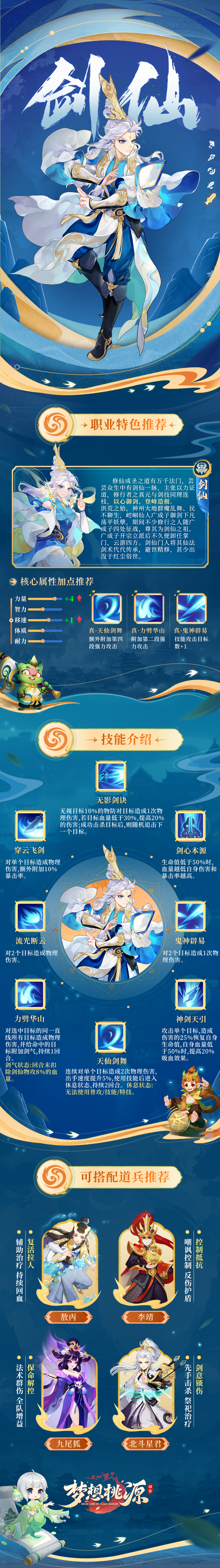 *以下是关于【剑仙】职业的基础技能介绍及道兵阵容/加点推荐,数值加点为小梦灵一家之言,欢迎各位大佬修士一同探讨。