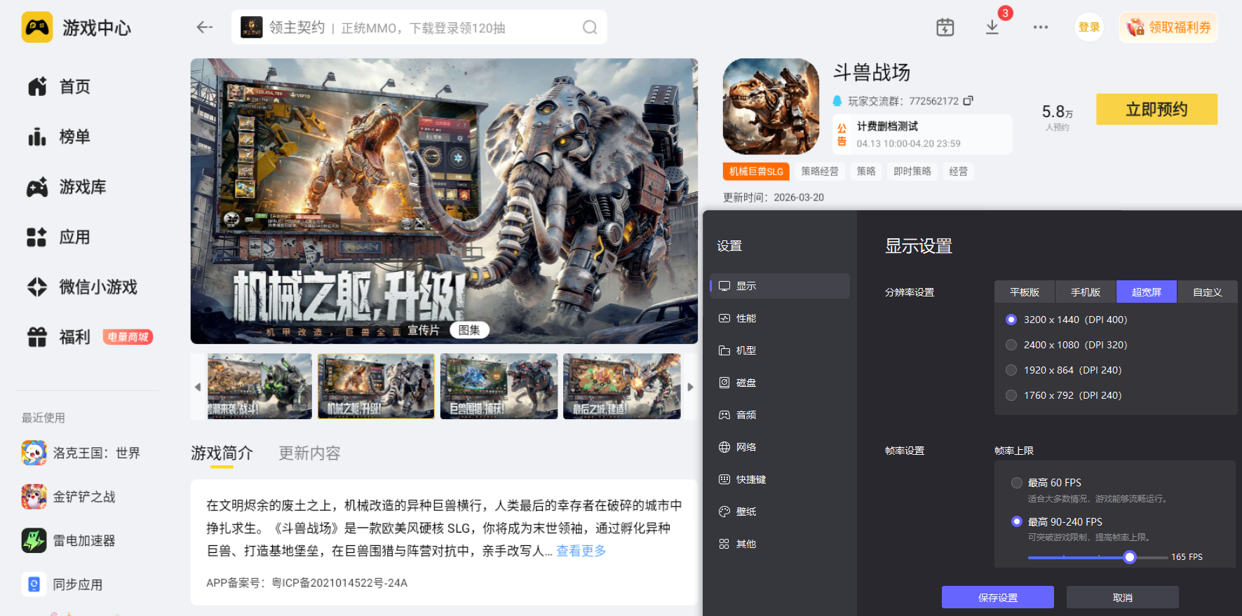 斗兽战场拥有影视级3D画质,机甲巨兽的建模细节、废土场景的纹理设计、技能释放的特效都十分精致,雷电模拟器依托电脑大屏优势,能够高清还原游戏全部画面细节,巨兽的机甲纹路、场景的废土氛围、战斗的特效冲击感在4K分辨率下都能清晰呈现,让游戏视觉体验得到全方位提升。