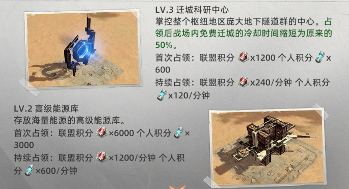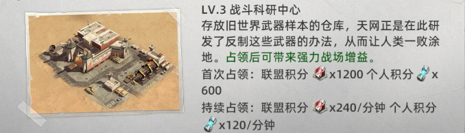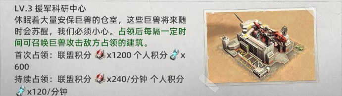 2.第15分钟(中场对抗): 战斗和援军科研中心开启。重点! 占领【援军科研中心】能召唤巨兽攻击敌方,这是翻盘神器!