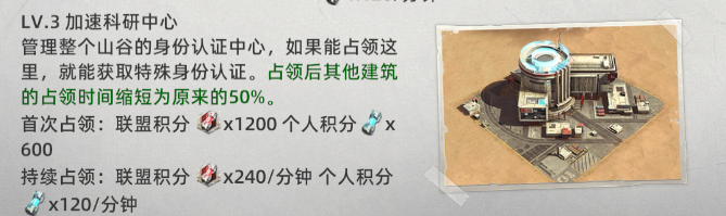 1.第3分钟(抢开场): 能源仓库和科研中心解锁。先占【加速科研中心】,占领时间直接减半,快人一步!