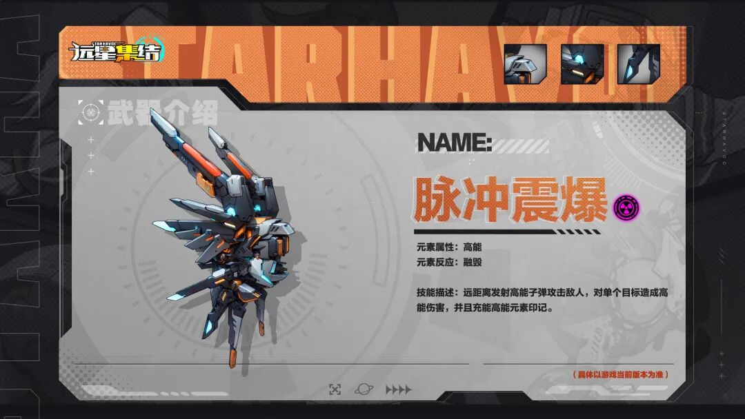 「脉冲震爆」:发射高能子弹,造成高能伤害并充能高能印记。