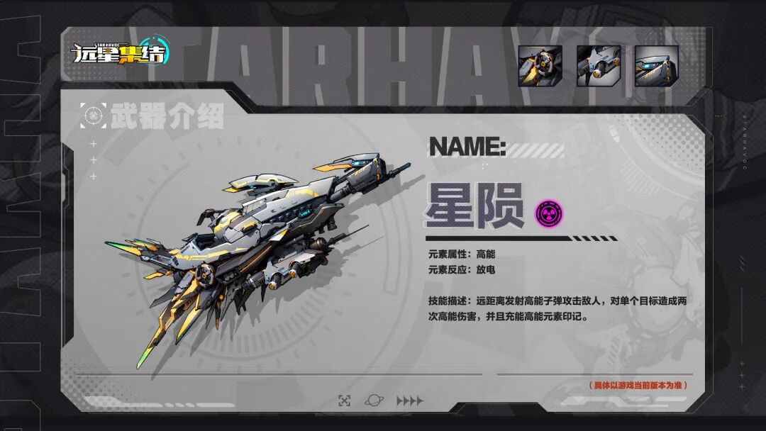 「星陨」:发射高能子弹,对单体造成双重高能伤害并充能高能印记。