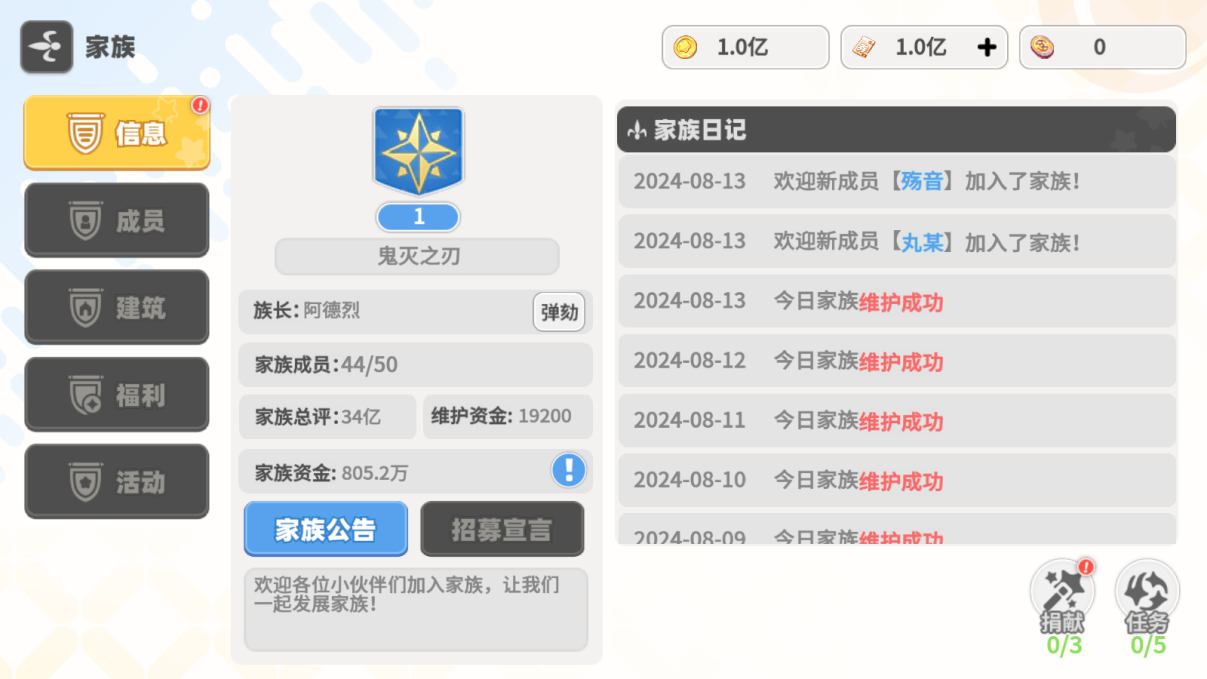 ·每天在固定时间,挑战家族副本,获取家族资金提升家族建筑