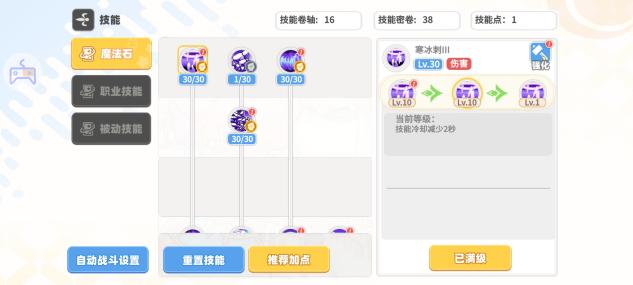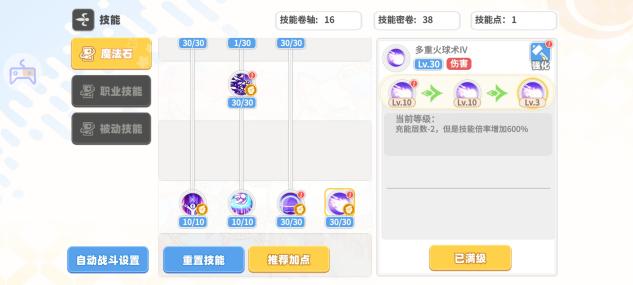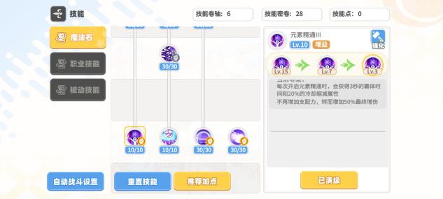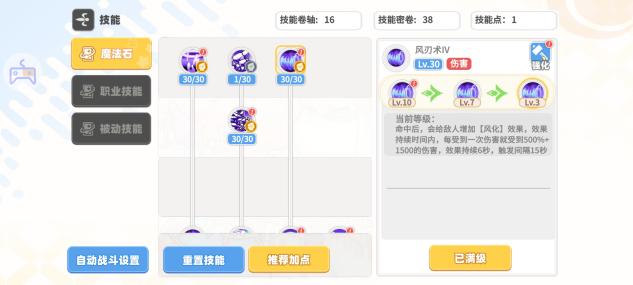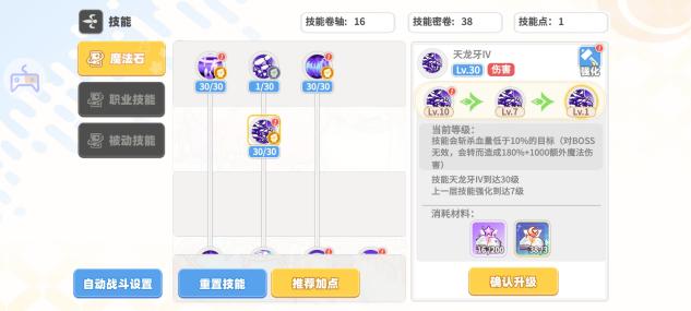 魔法石(优先加点魔法石,前中期技能点和技能秘卷稀缺阶段不建议技能点去点觉醒技能,等后期等级到达300以后技能秘卷大于4000时开始考虑觉醒技能)