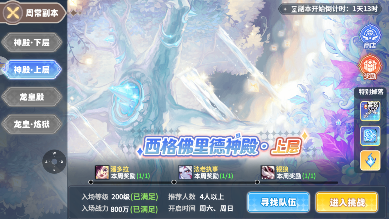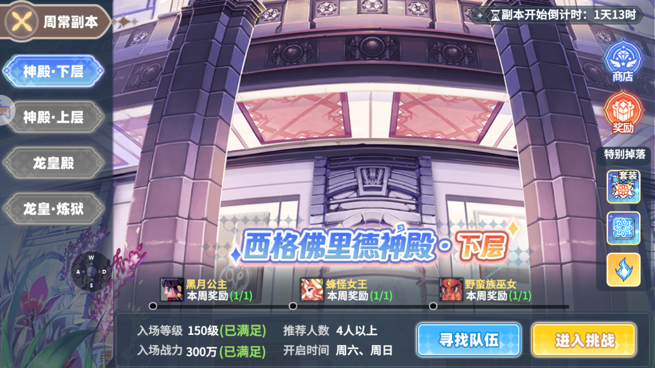 周常副本分为西格佛里德神殿·下层和西格佛里德神殿·上层,每一层对应三个BOSS。