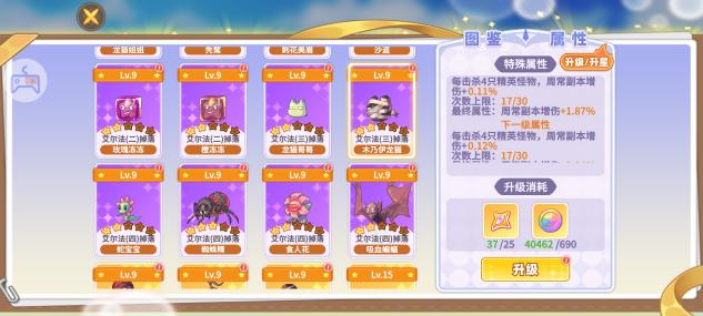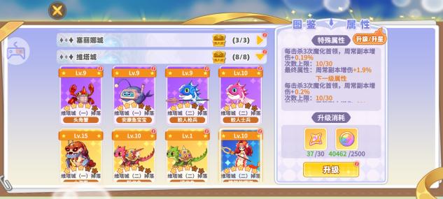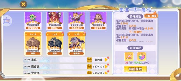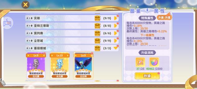 当同一地区所有图鉴星级均达成同一星级可解锁所有图鉴星级属性提升(如下图举例)