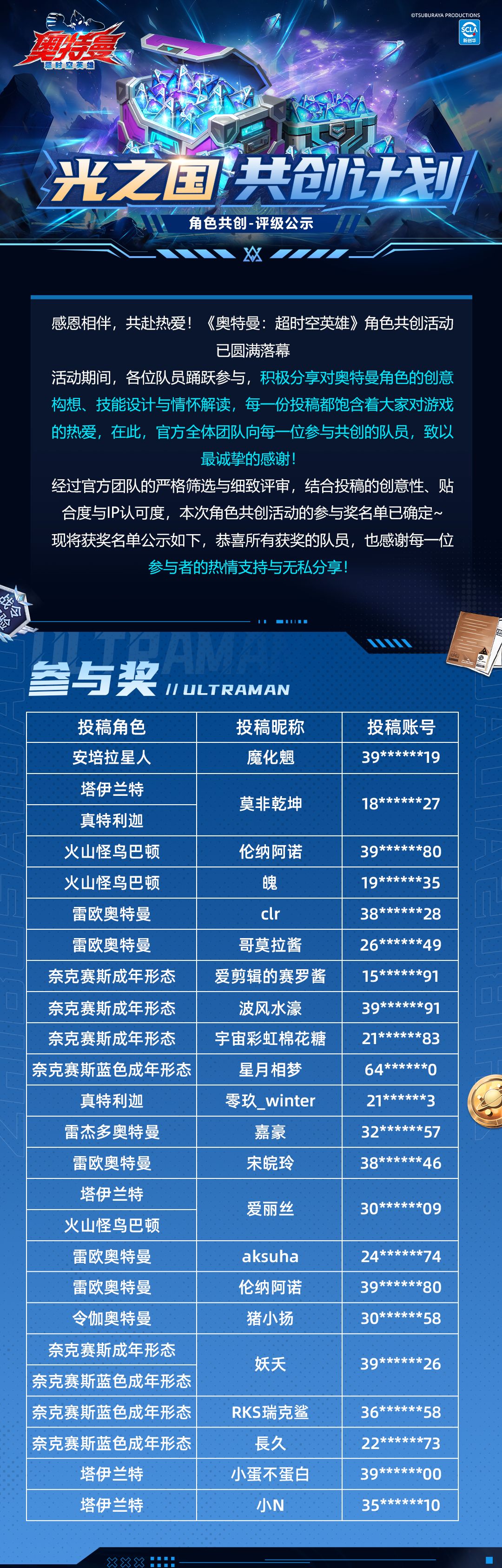 《奥特曼:超时空英雄》光之国共创计划-角色共创名单来啦~