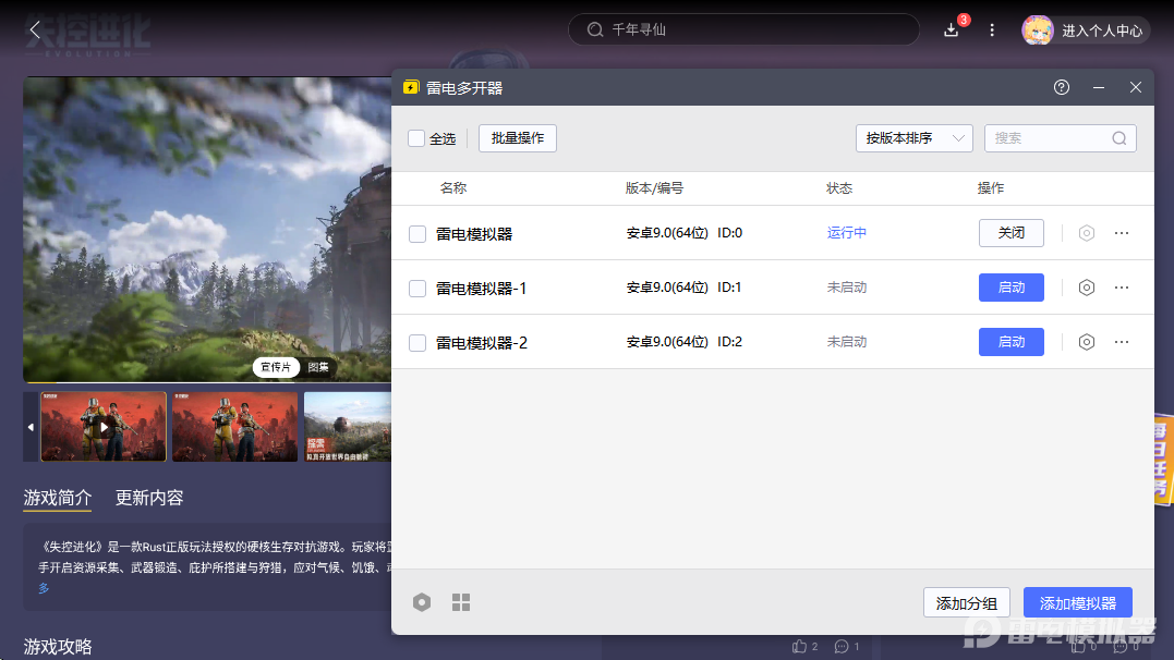 以上便是失控进化模拟器的全部内容了,其中所带来的玩法元素丰富,并且实际体验起来的效果上很是不错,各位近期若是对于此有打算,那么选择“雷电模拟器”这类工具来帮自己还是非常合适的,喜欢就抓紧去试试吧。