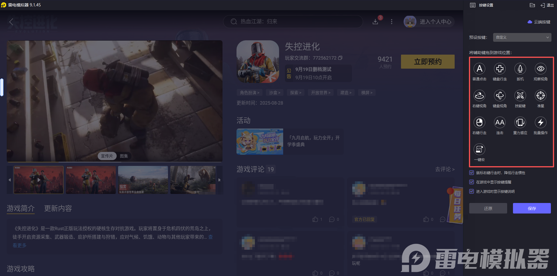 以上就是关于失控进化庇护所怎么建造的全部攻略,掌握这些技巧将让你的生存之旅更加轻松。现在就下载雷电模拟器,在更出色的体验中打造你的最强堡垒吧。