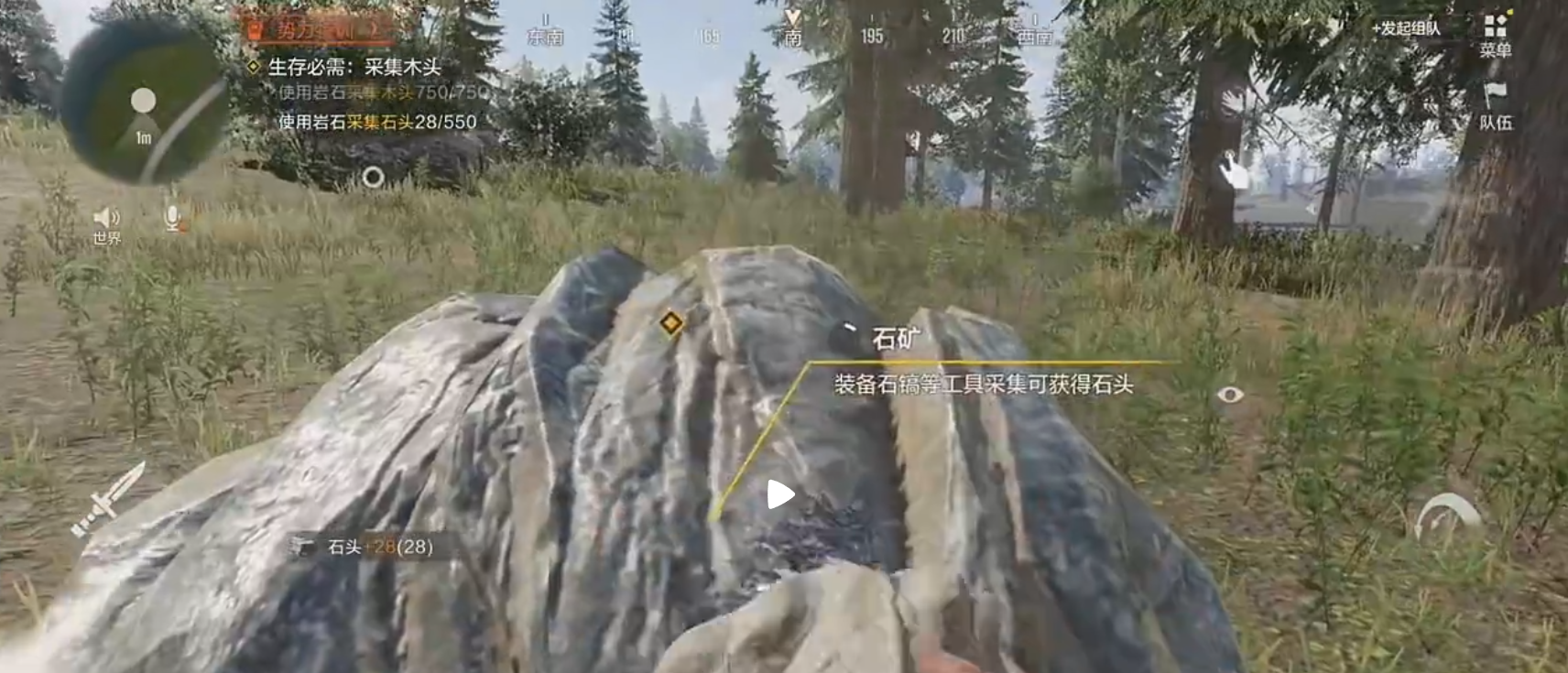 石头采集门槛极低,全地图广泛分布,新手可快速上手。草原上的零散石块是最易获取的来源,靠近后徒手即可拾取,单次得1-2个石头,适合开局应急收集,缺点是分布零散、总量少,仅能满足初期少量需求。