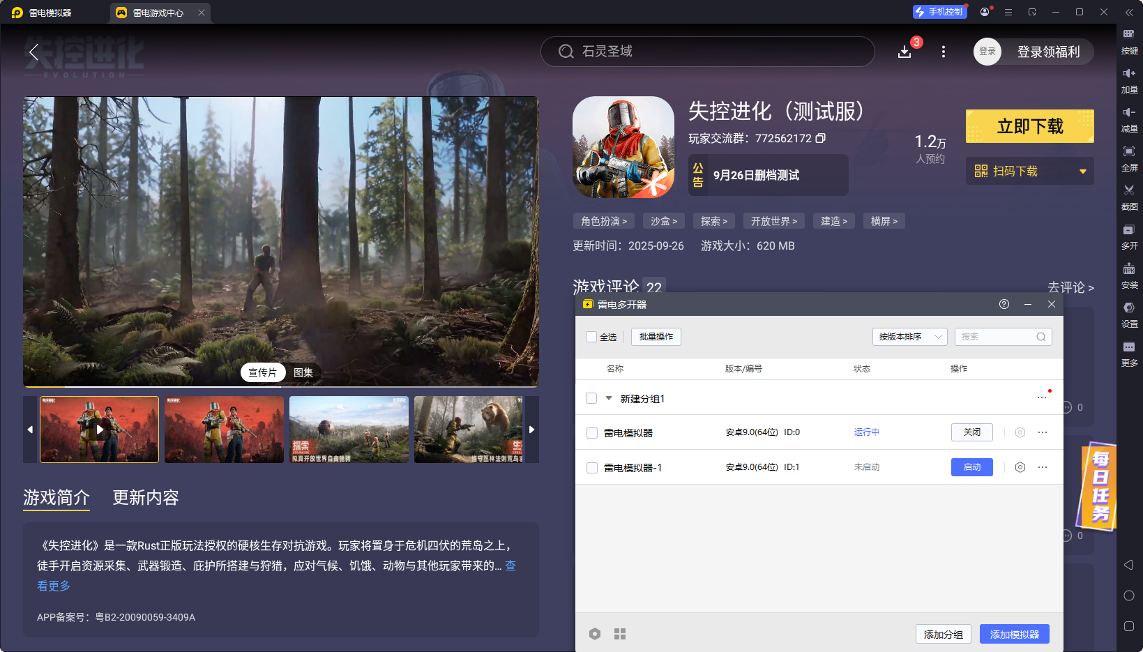 在这里小编建议大家用雷电模拟器来玩《失控进化》,结合安全区能带来不少方便,关键好处都和安全区的玩法贴合: