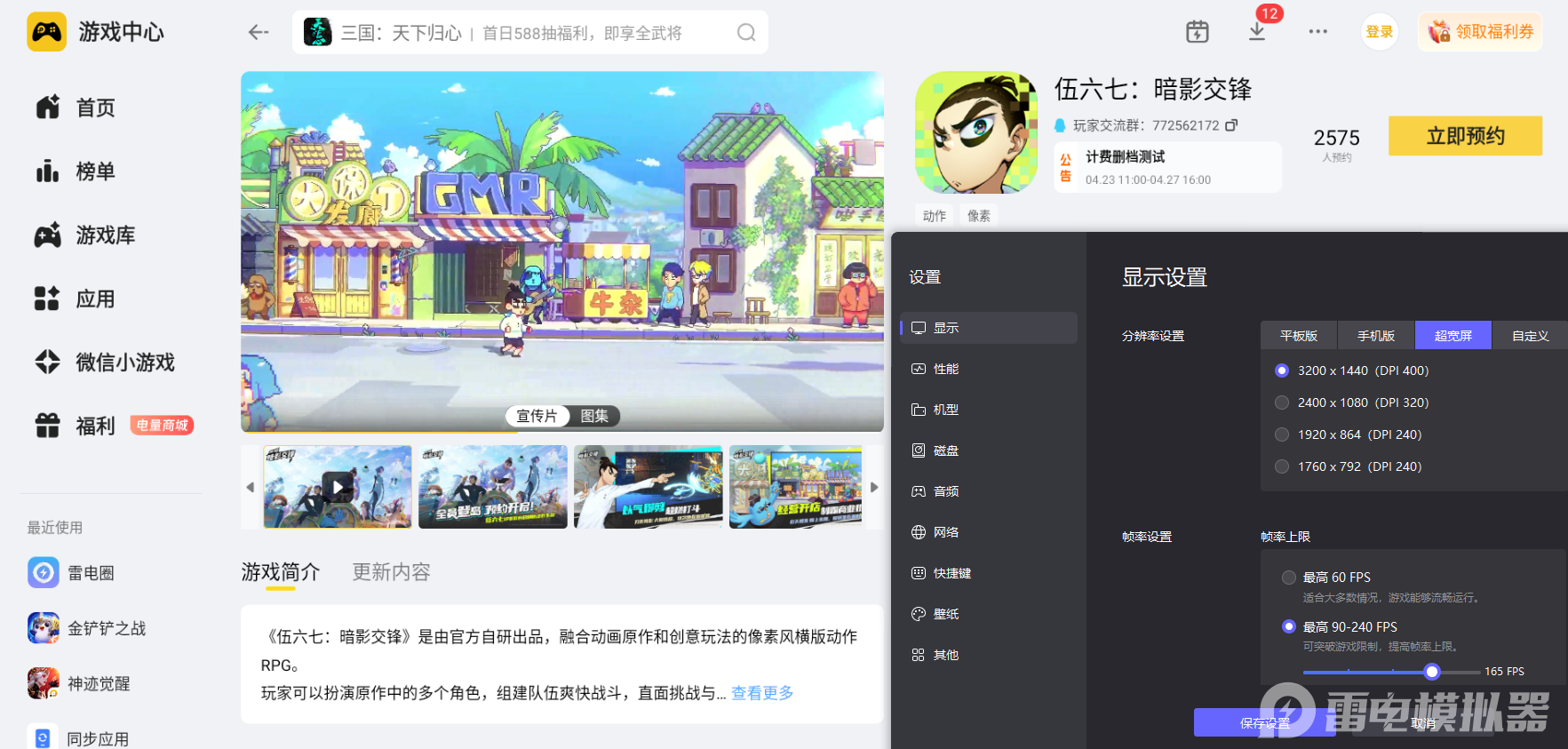 结合这些核心游玩特色,小编觉得非常适合在电脑端搭配雷电模拟器运行这款手游,不用局限手机小屏幕限制,能完整解锁游戏全部对战乐趣,沉浸式感受暗影刺客格斗对决的精彩体验。大家只需要在官网下载雷电模拟器,然后在雷电游戏中心搜索该游戏点击预约即可。