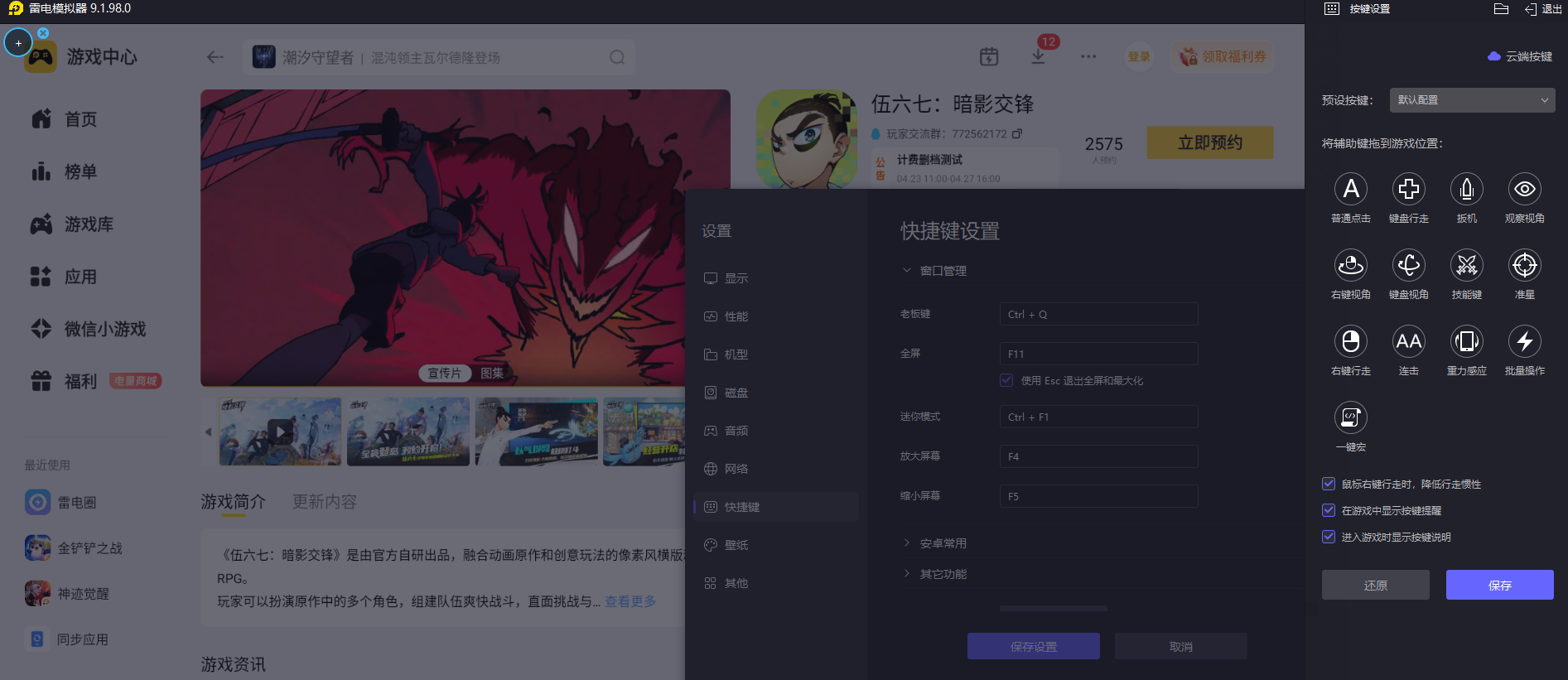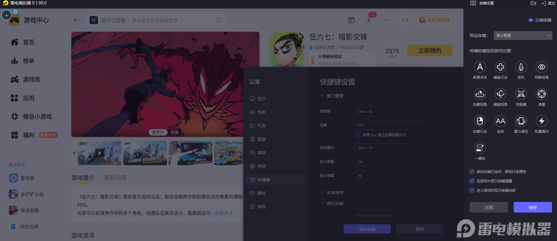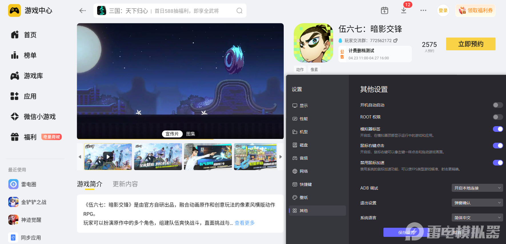 伍六七暗影交锋主打刺客格斗和策略闯关核心玩法,实战过程中需要快速切换技能连招、精准走位躲避对手攻击,对操作的精准度和响应速度要求很高。雷电模拟器支持自定义键鼠按键适配设置,能够贴合格斗对战操作习惯,精准落实每一步对战操作,轻松应对各类高强度刺客对决关卡。