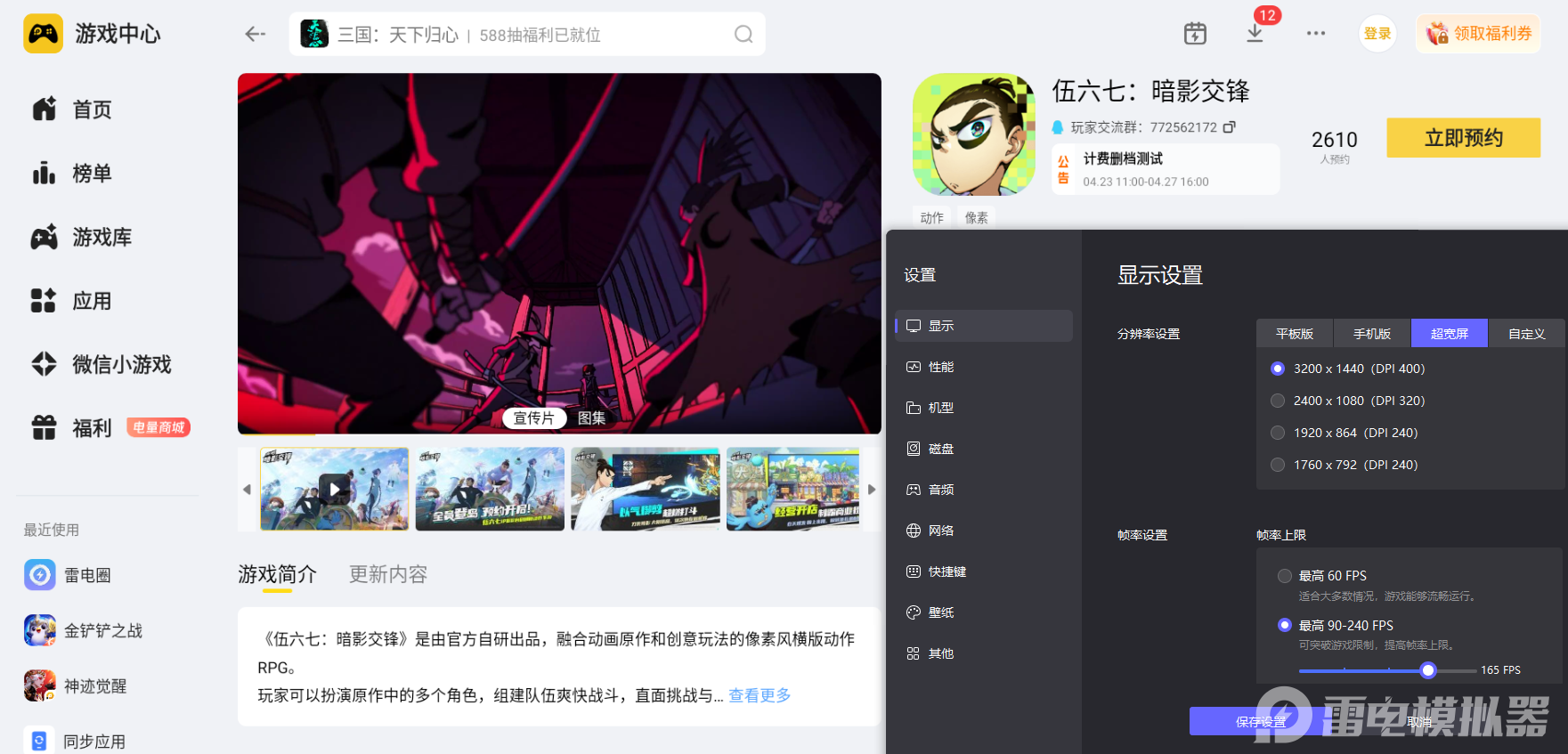 综合整体游玩效果来看,伍六七暗影交锋电脑版搭配雷电模拟器体验是目前最合适的电脑游玩方式。按照分享的简单步骤就能快速完成预约,轻松解锁更好的游戏游玩感受,安心体验这款国漫改编手游的全部趣味内容。