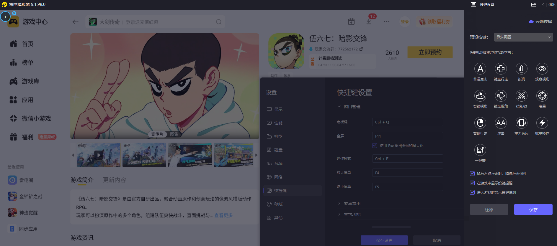 这款手游格斗对战看重连招衔接和技能释放节奏,多角色切换、闪避格挡和大招释放都需要精准操作,雷电模拟器支持键鼠按键自定义设置,可以按照个人操作习惯搭配键盘对应按键适配游戏所有操作指令,精准把控每一次技能释放和角色移动,轻松打出流畅连招,熟练上手后轻松完成各类高阶对战操作。