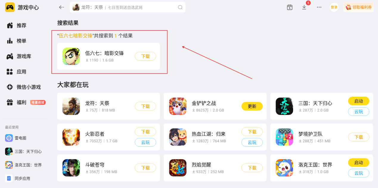 用雷电模拟器预约这款游戏的操作十分简单。先在电脑上下载安装正版雷电模拟器,打开软件后,在模拟器内置的雷电游戏中心搜索框中,输入“伍六七暗影交锋”全称,找到游戏详情页面后,直接点击页面上的下载按钮,就能顺利完成预约下载。目前游戏在测试中,大家还需要赶紧下载来抢预约资格哟。