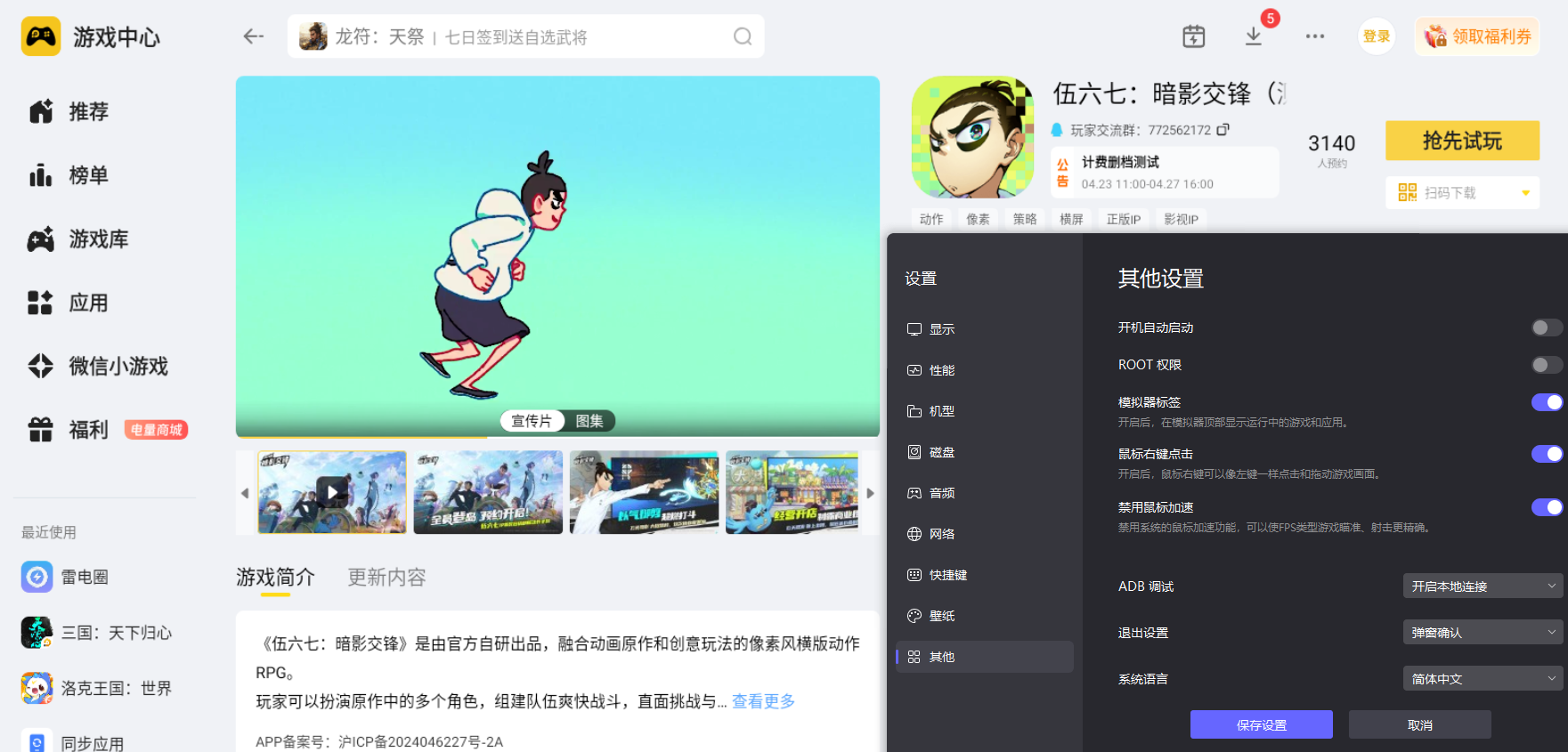 想要顺利完成伍六七暗影交锋预约,又想获得优质的游玩体验,雷电模拟器是十分合适的选择。提前通过雷电模拟器完成预约,静待游戏上线,就能沉浸式体验伍六七的热血格斗与趣味经营之旅,感受游戏的全部乐趣。