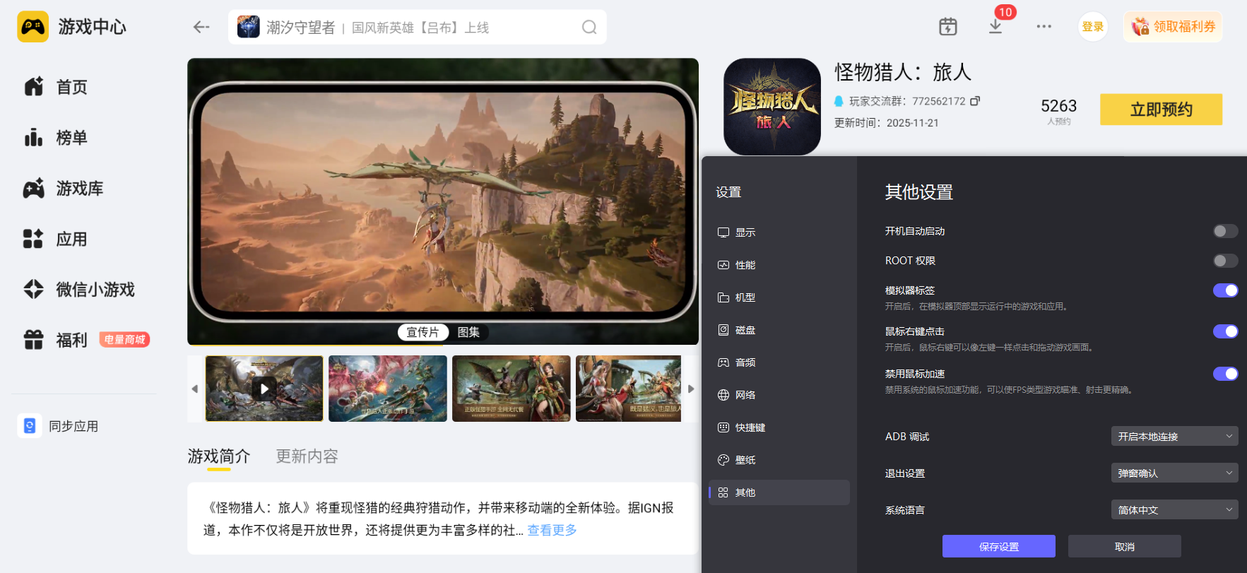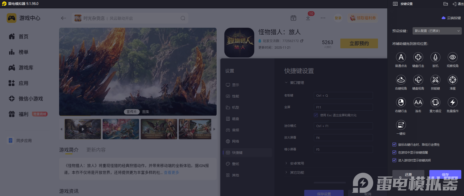 战斗中需要快速给随从切换作战模式、释放技能或布置陷阱,手机触屏操作时容易出现点击偏差,会打乱和随从的配合节奏。雷电模拟器支持键盘鼠标自定义操作,点击精准度更高,操控露塔可设置陷阱、让艾露猫切换攻击模式、指挥梅朵鹂释放支援歌声都更顺手,和随从的配合更流畅,狩猎时的整体节奏也更稳定。