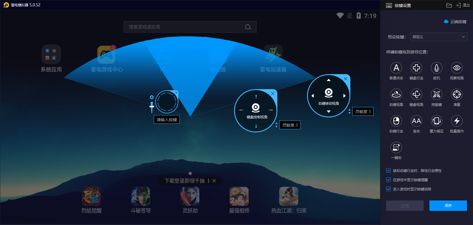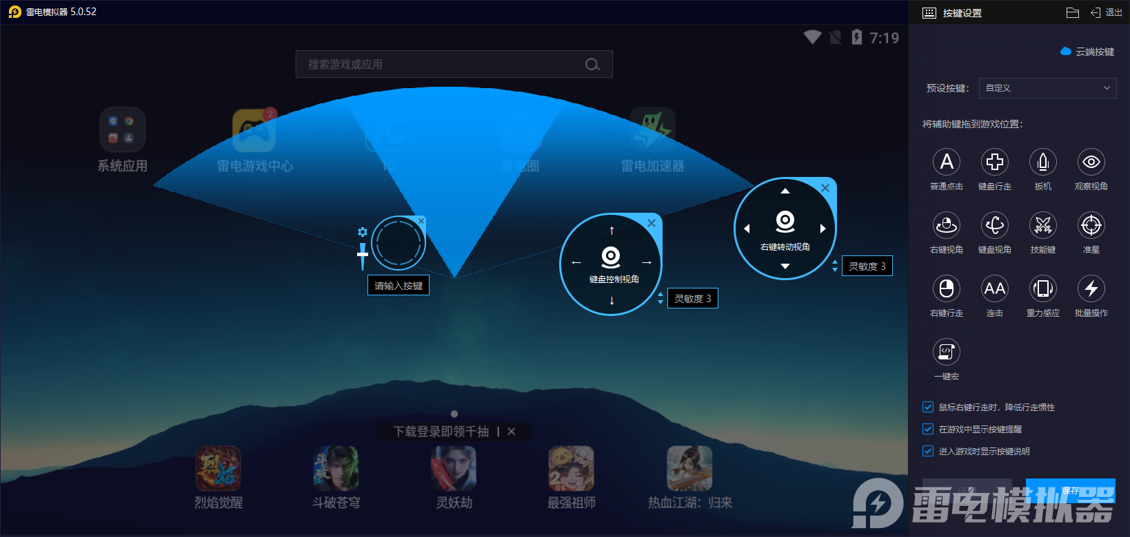 而且,雷电模拟器支持键鼠的自定义功能,各位可根据个人习惯自由设置按键布局,将触屏操作绑定到键盘鼠标,无论是近战武器的快速连招、远程武器的精准瞄准,还是家园建造时的工具切换、建材选取,都能实现精准操作。相比手机触屏易出现的误触、拖拽无反应等问题,键鼠操作的响应速度更快、精度更高。