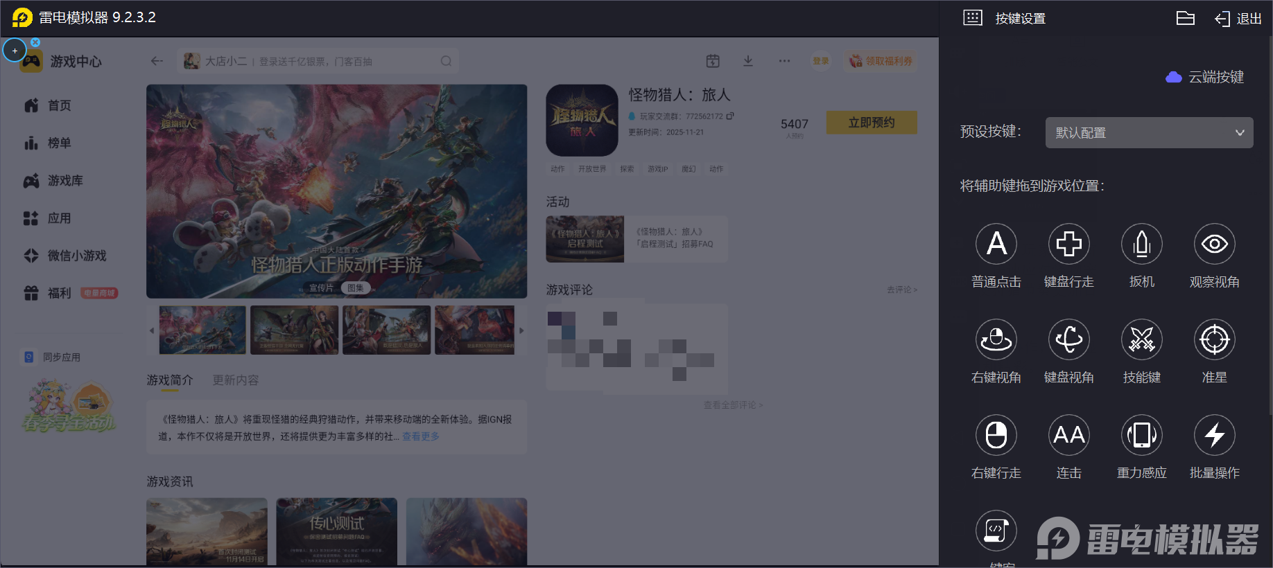 雷电模拟器——怪物猎人旅人电脑版的好帮手